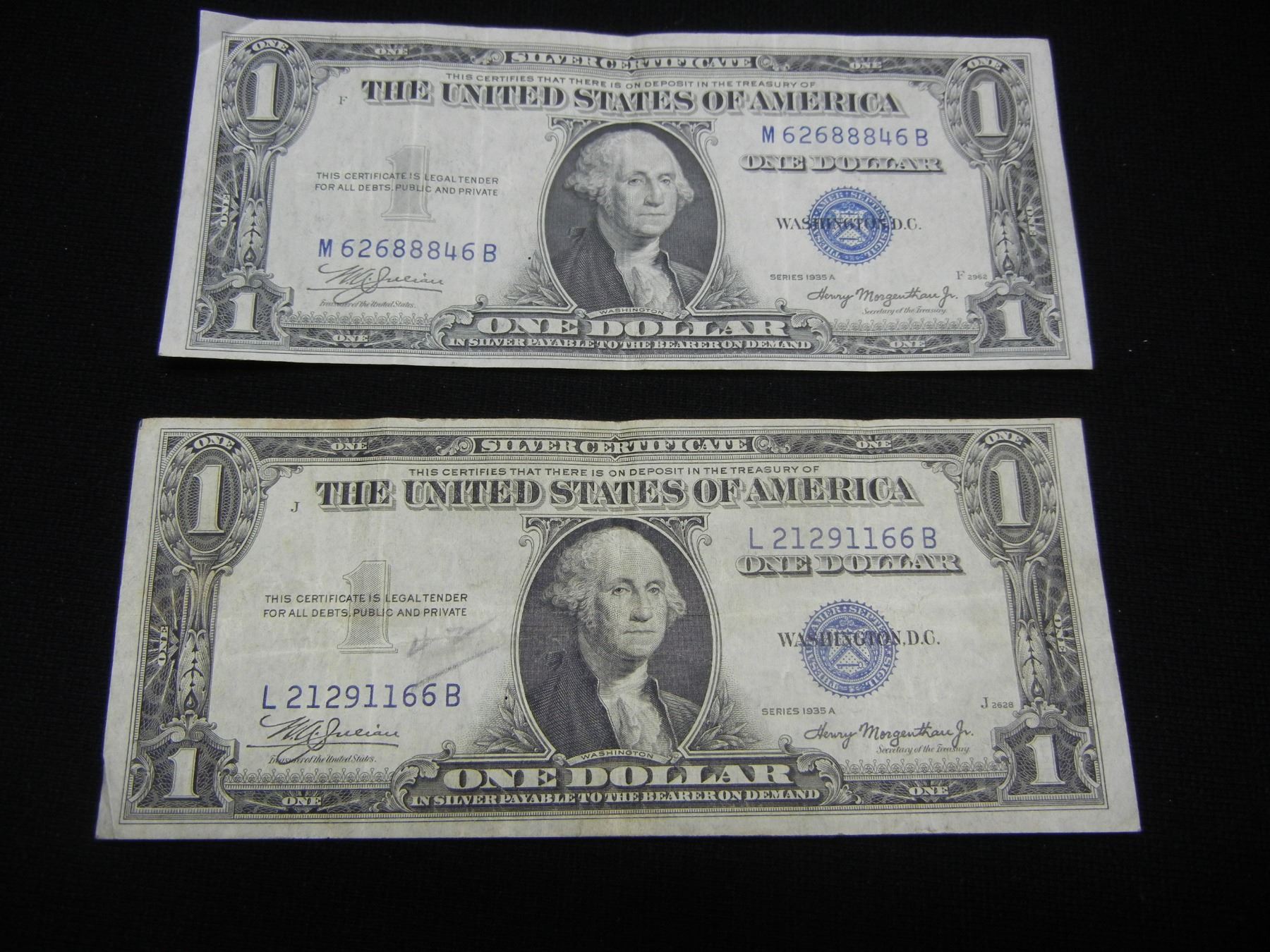 (2) 1935 A One Dollar Silver Certificates