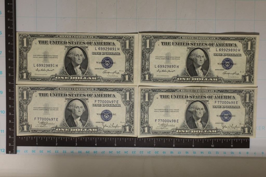 BLUE SEALS, 2-SETS OF 2 CONSECUTIVE SERIAL NUMBERS