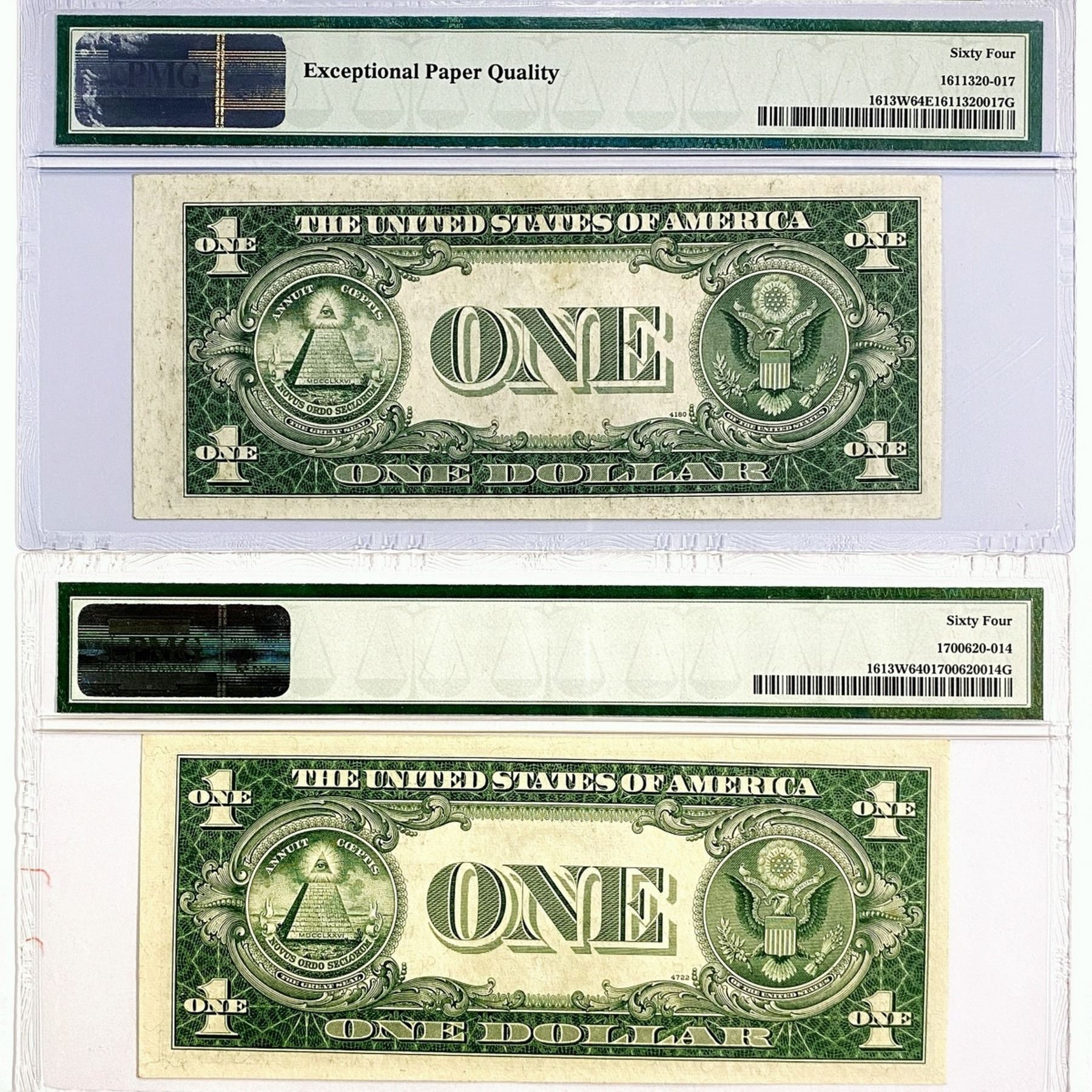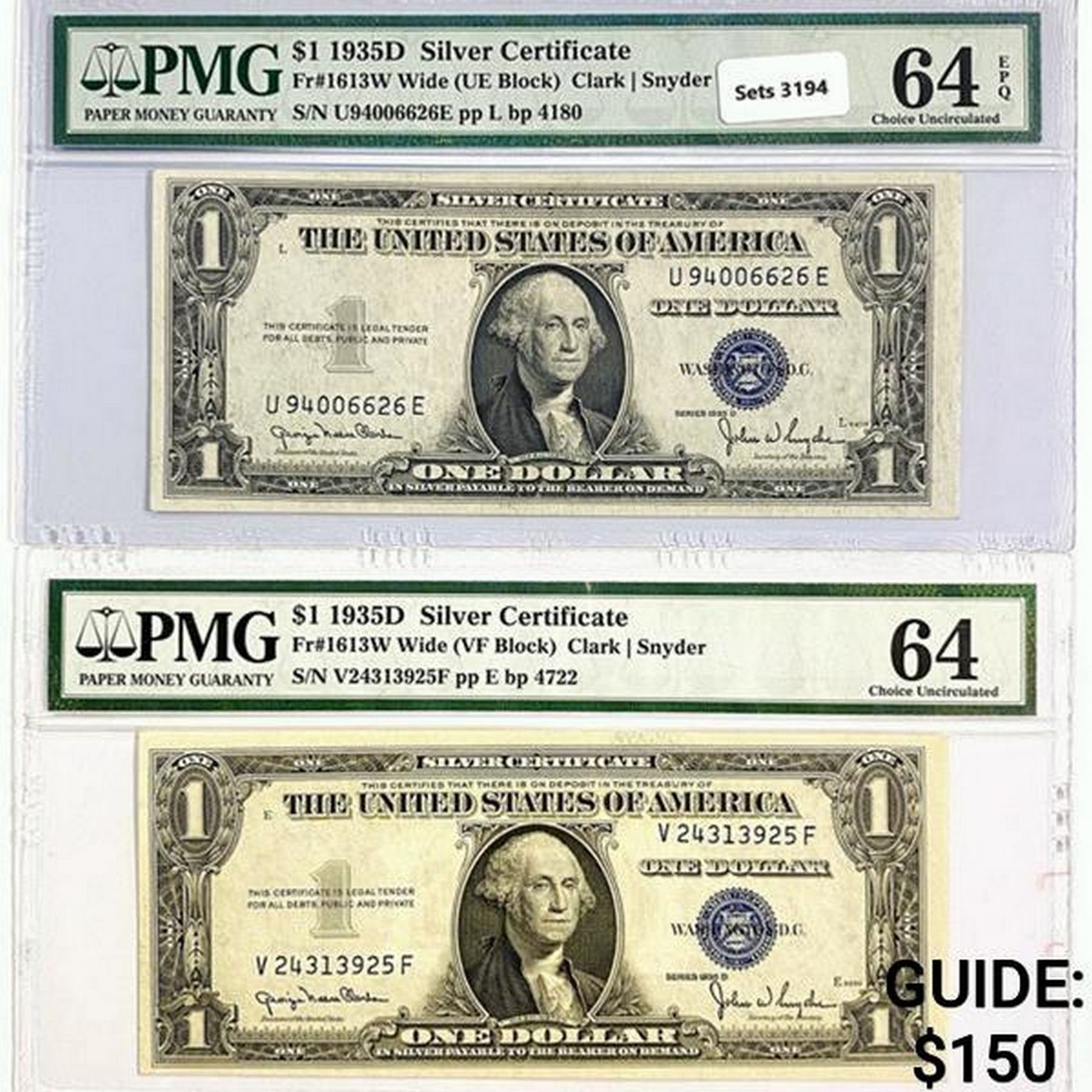 (2) 1935 D $1 Silver Cert.'s PMG Ch UNC 64