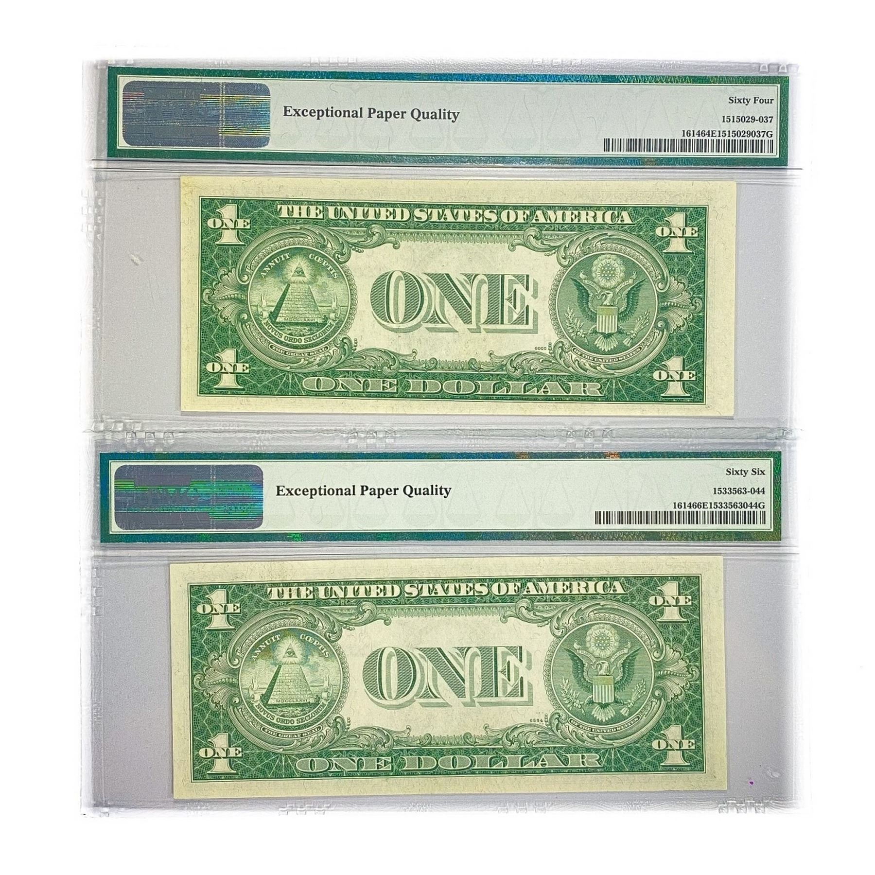 f. Notes sold referencing a third-party grading service are sold “AS IS” without any express or implied warranty, except for guarantee by GSA that they are genuine. Grading, condition or other attributes of any Product may have a material effect on its value and the opinion of others, including third-party grading services such as PCGS Currency and PMG may differ with that of GSA. GSA shall not be bound by any prior or subsequent opinion, determination, or certification by any grading service. Bidders specifically waive any claim to right of return of any Product because of the opinion, determination, or certification, or lack thereof, by any grading service. Certain warranties may be available from the grading services and Bidders are referred to them for further details: Paper Money Guaranty (PMG), PO Box 4711, Sarasota, FL 34230; PCGS Currency, PO Box 10470, Peoria, IL 61612-0470; PCGS Gold Shield, PO Box 9458, Newport Beach, CA 92658. Third-party graded notes are not returnable for any reason whatsoever.