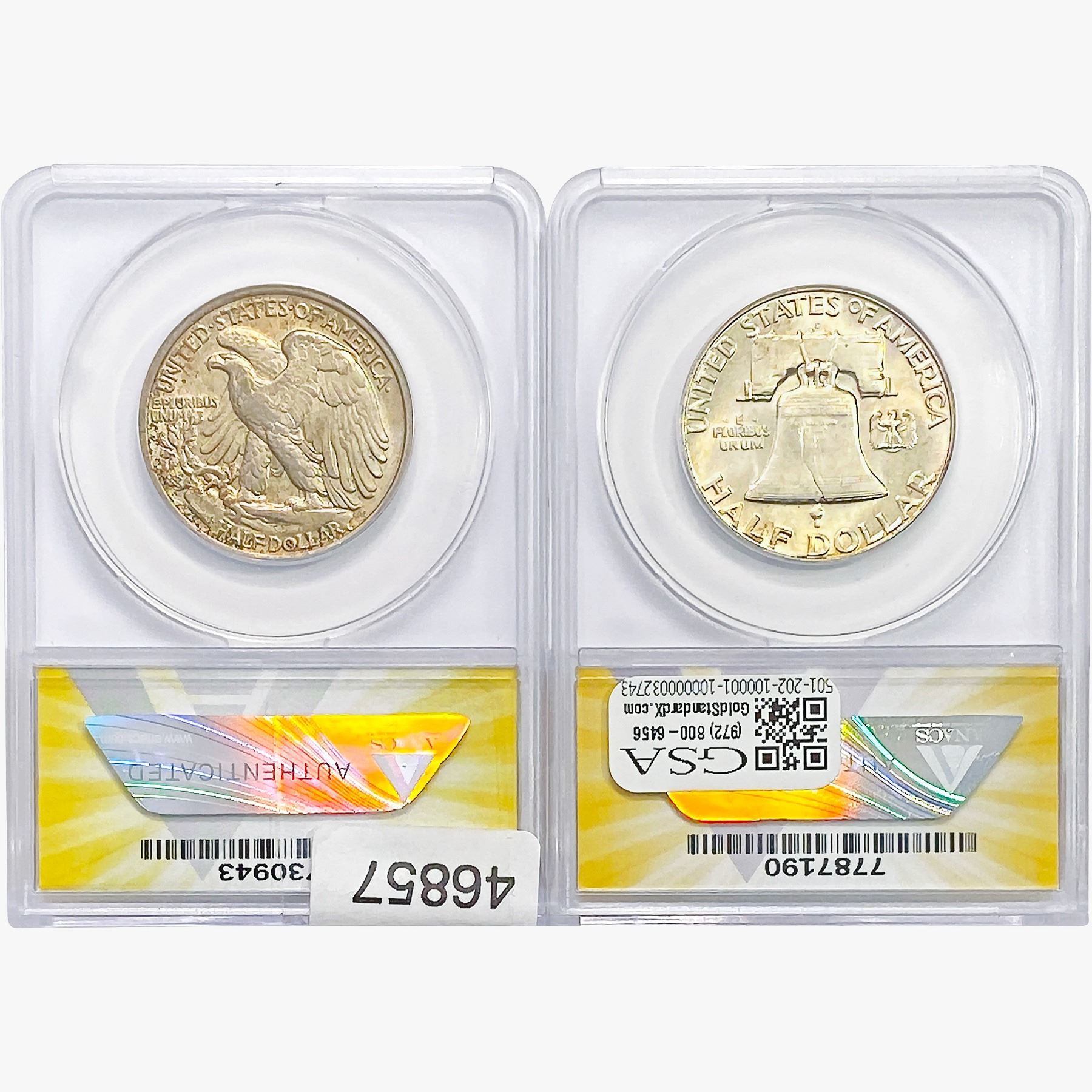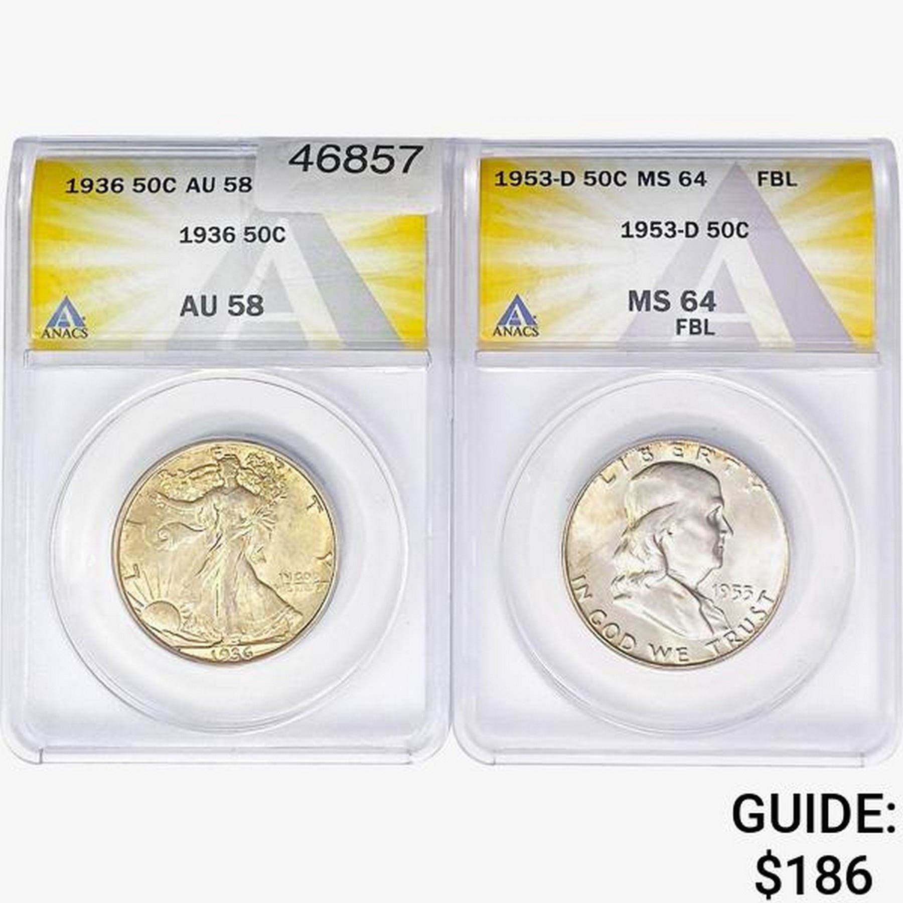 [2]1936&1953-D 50C Walking Liberty, 50C Franklin Coin ANACS