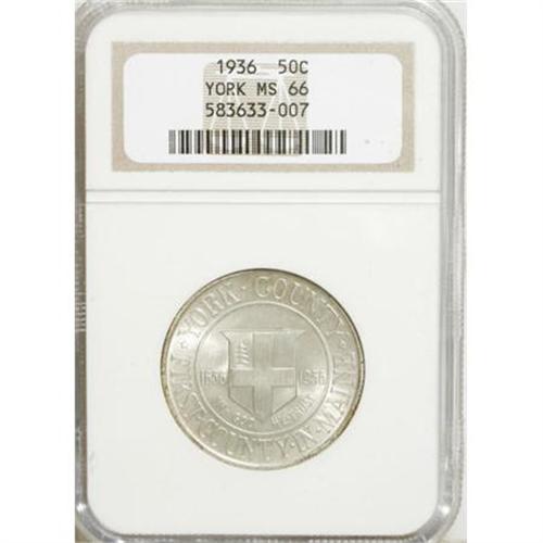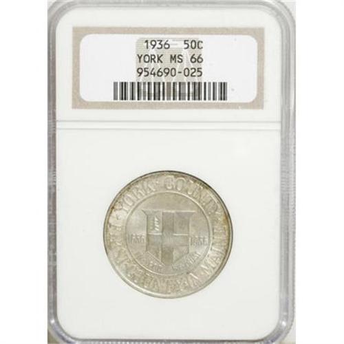 <B>1936 50C York MS66 NGC,</B></I> precisely struck, delicate gold-gray toning, well preserved fields; and a <B>1936 York MS66 NGC,</B></I> close to untoned, minimal contact, sharply struck and lustrous.<BR><BR><b>Shipping:</b> Coins & Currency (<a target="_blank" href="http://www.heritageauctions.com/common/shipping.php">view shipping information</a>)