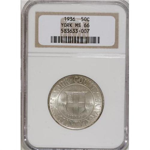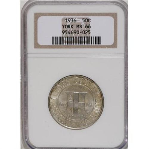 <B>1936 50C York MS66 NGC,</B></I> precisely struck, delicate gold-gray toning, well preserved fields; and a <B>1936 York MS66 NGC,</B></I> close to untoned, minimal contact, sharply struck and lustrous.<BR><BR><b>Shipping:</b> Coins & Currency (<a target="_blank" href="http://www.heritageauctions.com/common/shipping.php">view shipping information</a>)