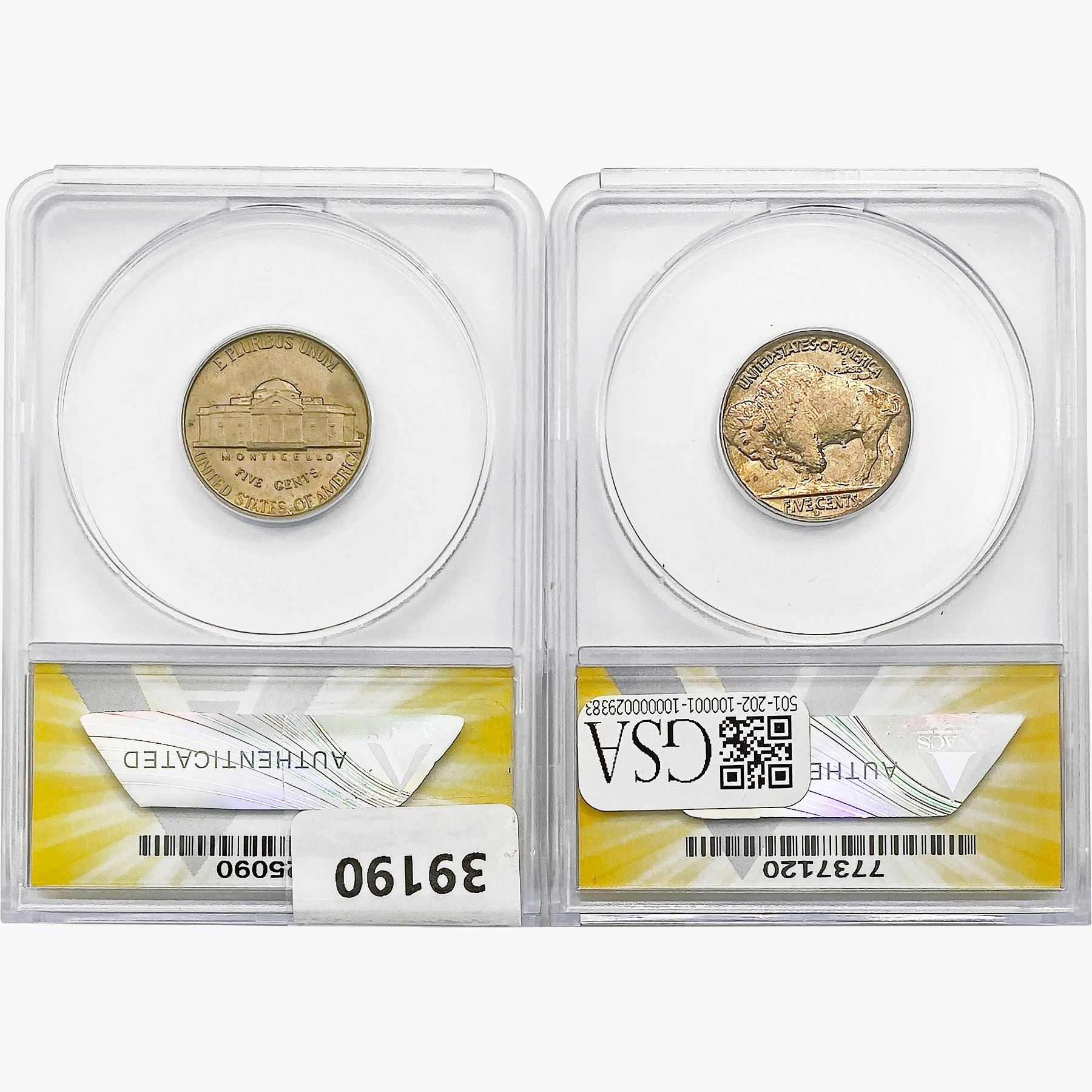 [2] 1938-D&1942-D Silver Nickels ANACS MS