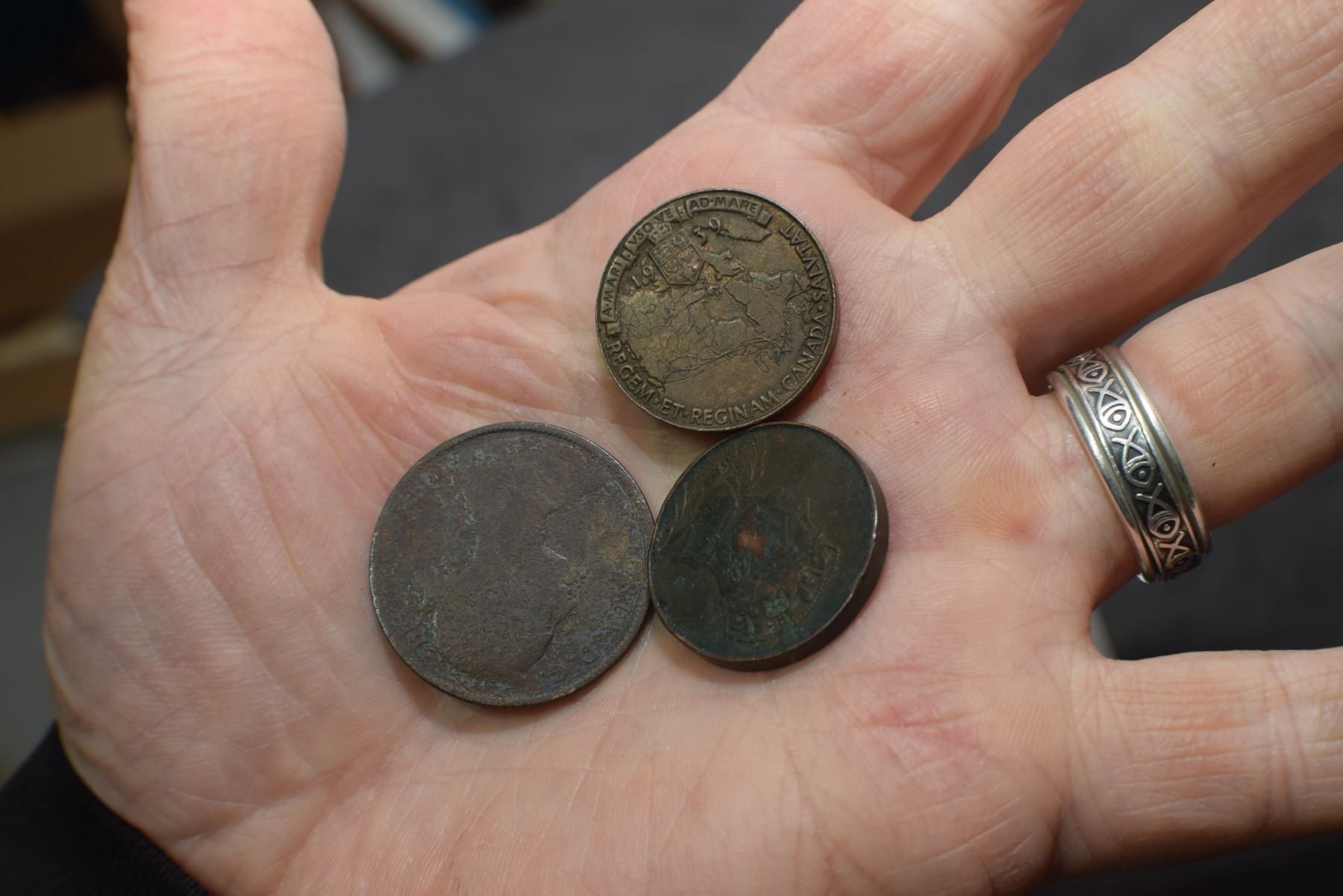 2 1939 ROYAL VISIT MEDALLIONS / 1800s FARTHING