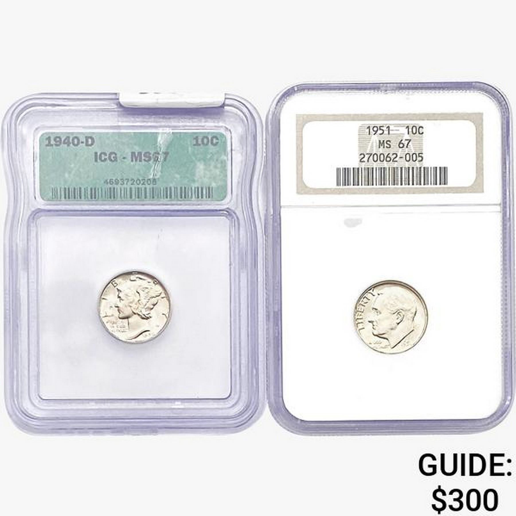 [2] 1940-D&1951 Silver Dimes ICG/NGC MS67