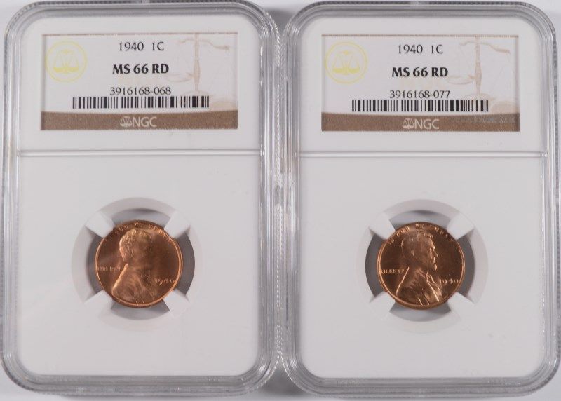 ( 2 ) 1940 LINCOLN CENTS, NGC MS-66 RED GEMS!!