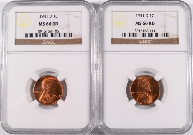 ( 2 ) 1941-D LINCOLN CENTS, NGC MS-66 RED GEMS!!