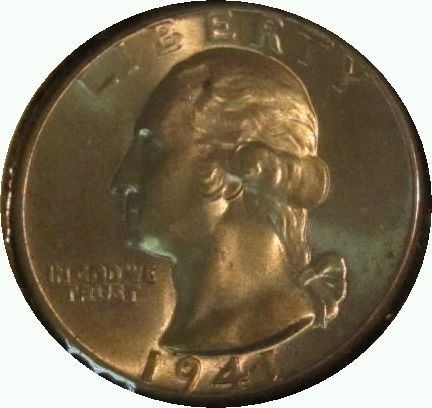 2. 1941 P Silver Washington Quarter. Lightly toned MS 63,