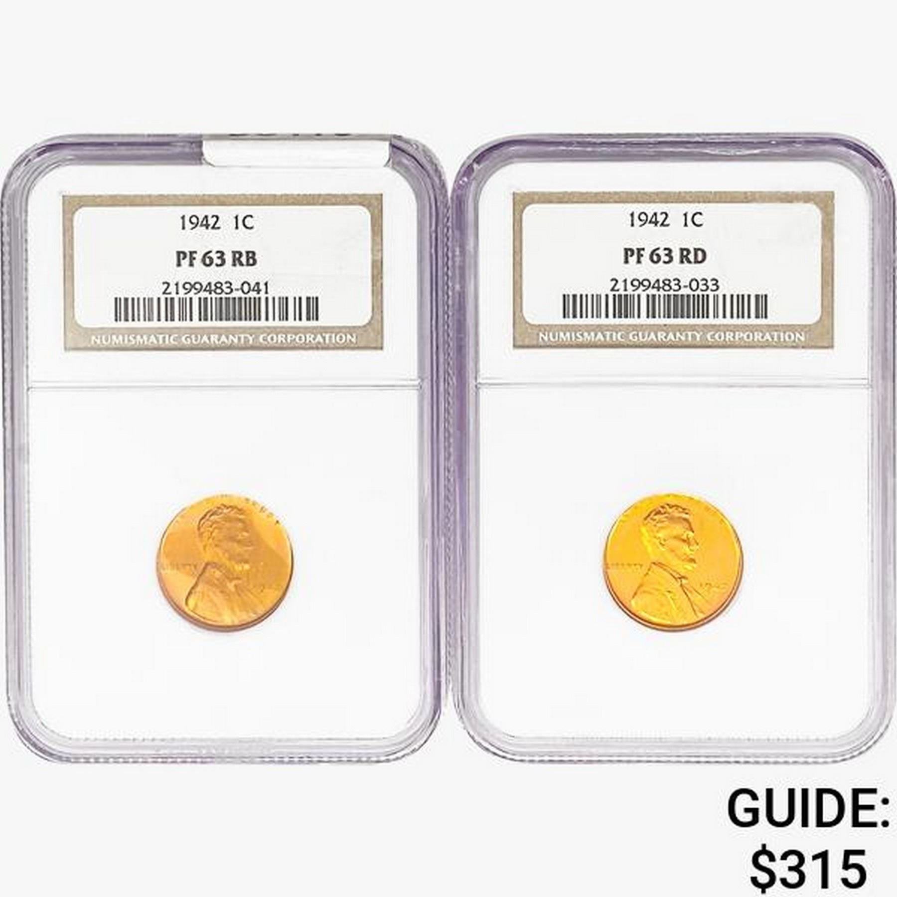 [2]1942 Wheat Cent NGC PF63 RB/RD