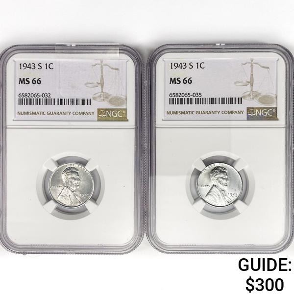 (2) 1943-S Wheat Steel Cents NGC MS66