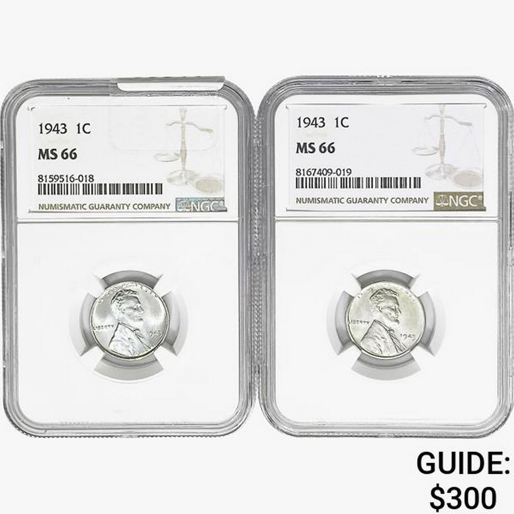 [2] 1943 Wheat Cent NGC MS66