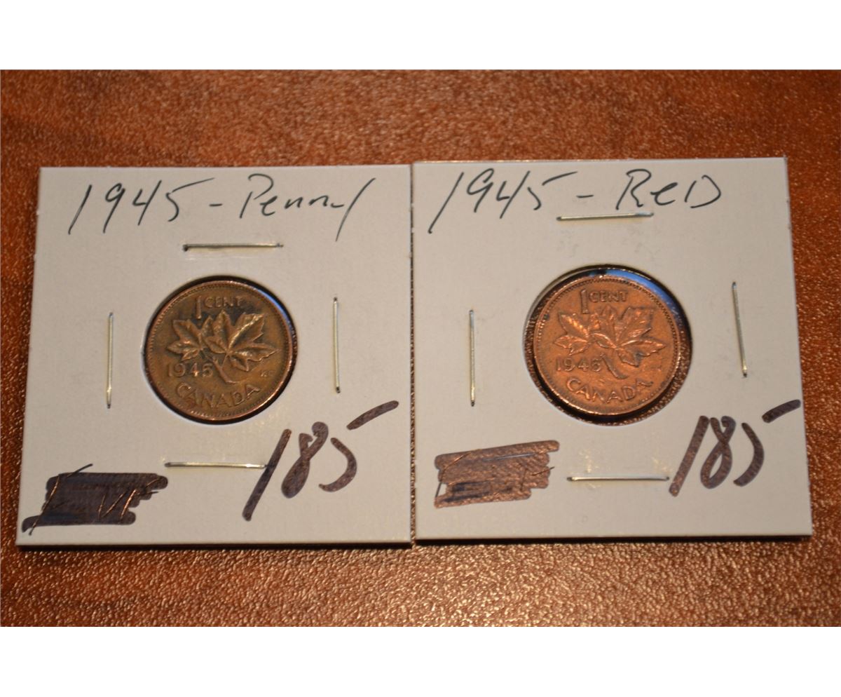 (2) 1945 Canada 1-Cent