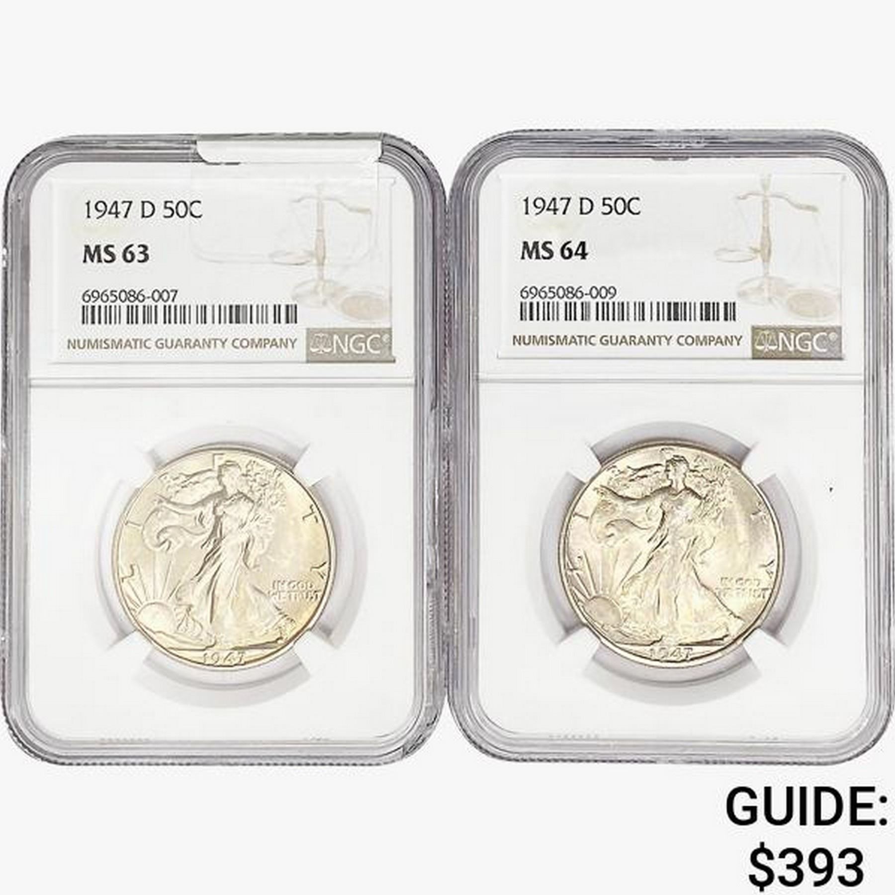 [2]1947-D Walking Liberty Half Dollar NGC MS63-64
