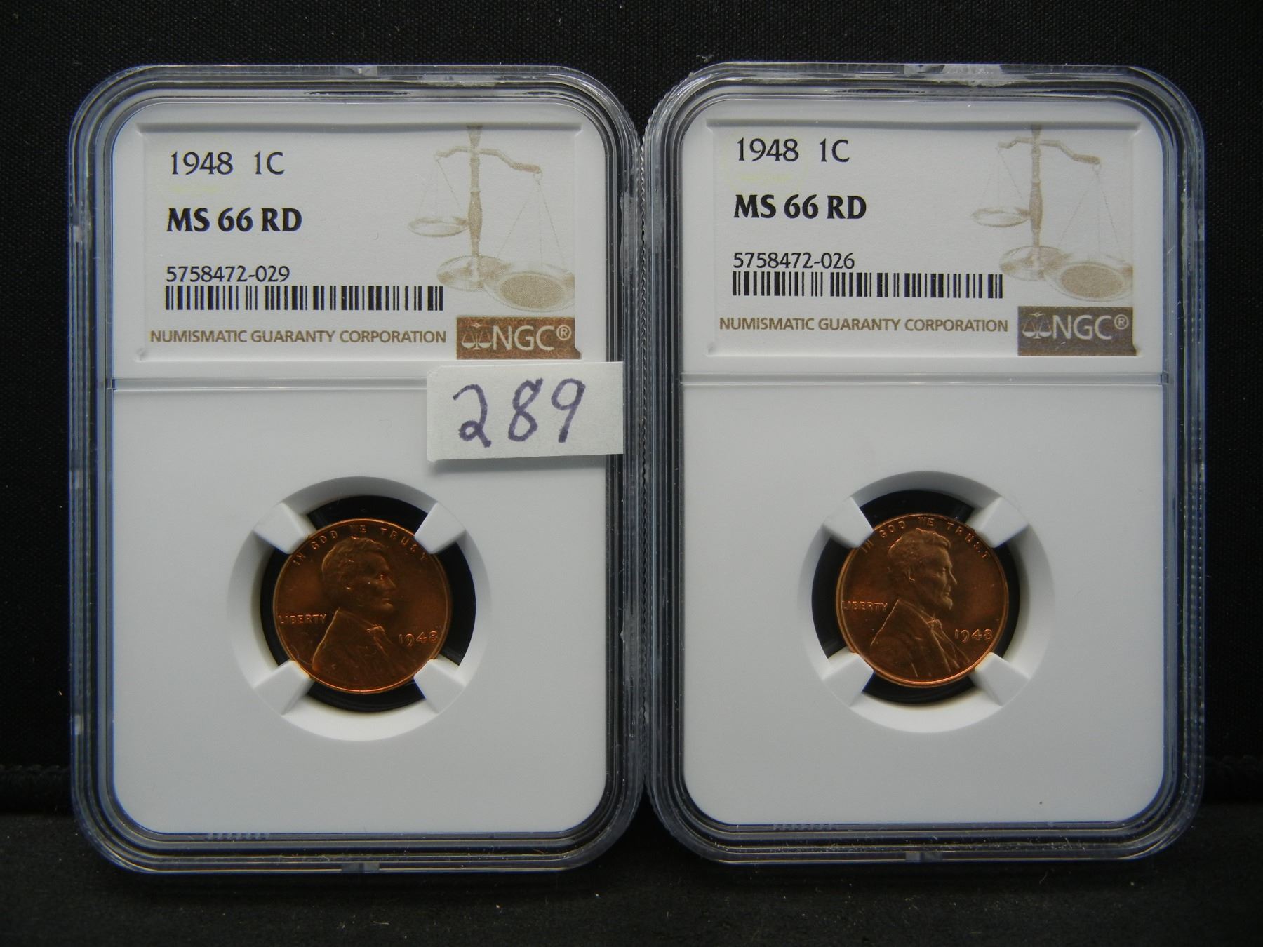 (2) 1948 Lincoln Cents NGC MS66 RED NGC Price Guide For Pair $270