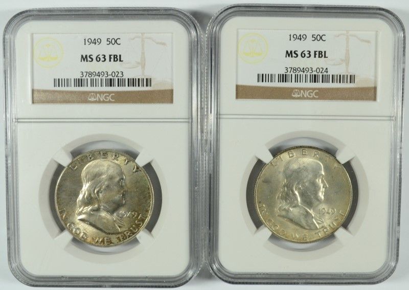 ( 2 ) 1949 FRANKLIN HALF DOLLAR, NGC MS-63 FBL