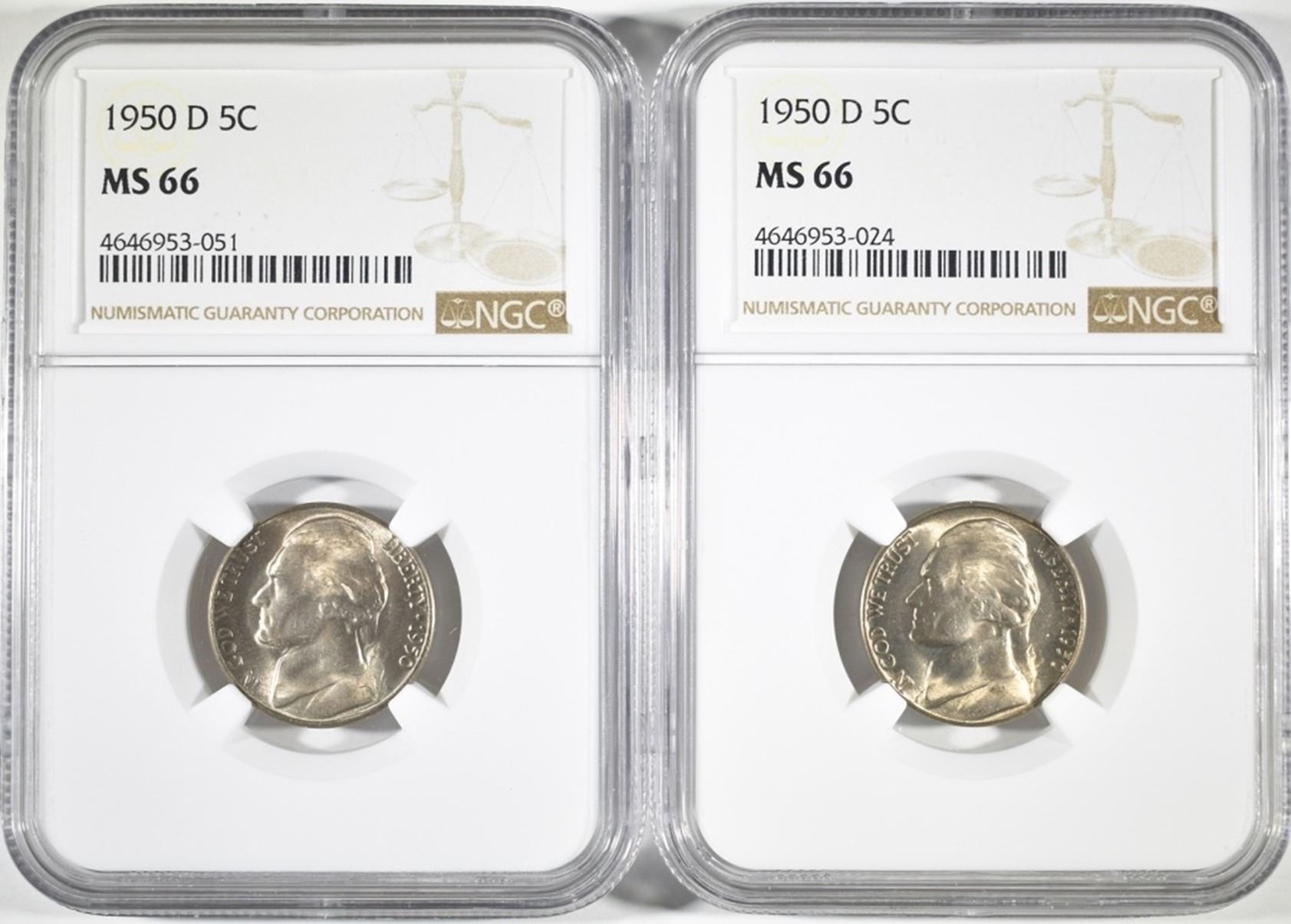 Grading: Every person has their own opinion. It is the responsibility of the buyer to examine and grade to their own satisfaction before they bid. ABSOLUTELY NO COIN RETURNS ON THE BASIS OF GRADE. Buyers shall rely entirely on their own inspection and information. Our estimates are values taken from the latest "Coin World" trends based on t he grade listed of a coin. This value/estimate is not an inducement to bid this amount. Bid the amount you wish. If you have questions or concerns about any coin, call us before you bid.