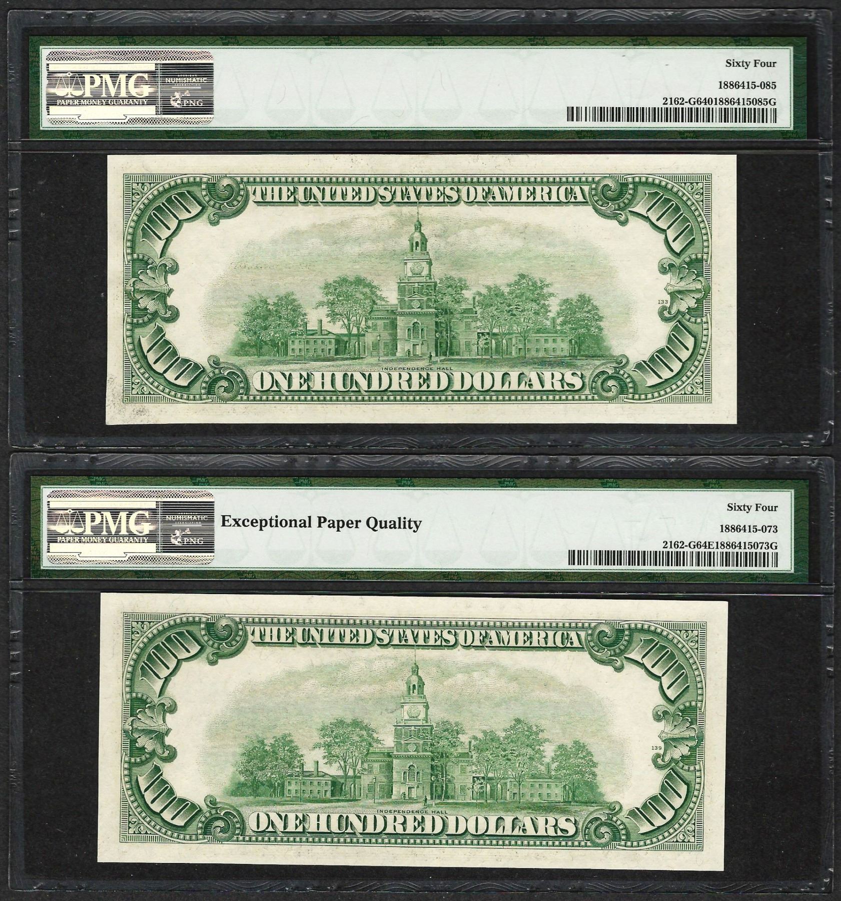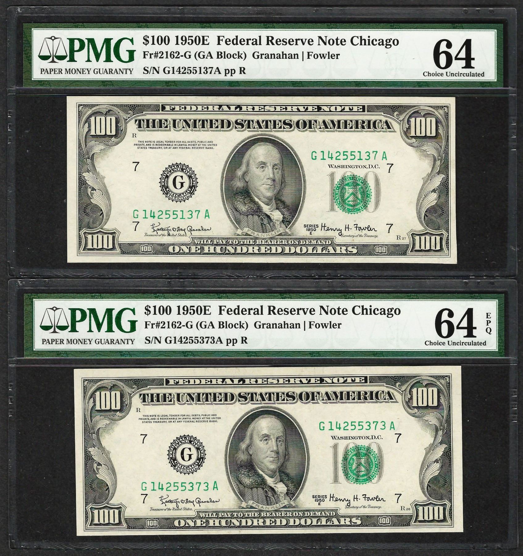 (2) 1950E $100 Federal Reserve Notes Chicago PMG Choice Uncirculated 64EPQ