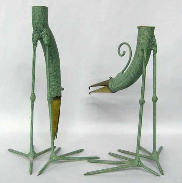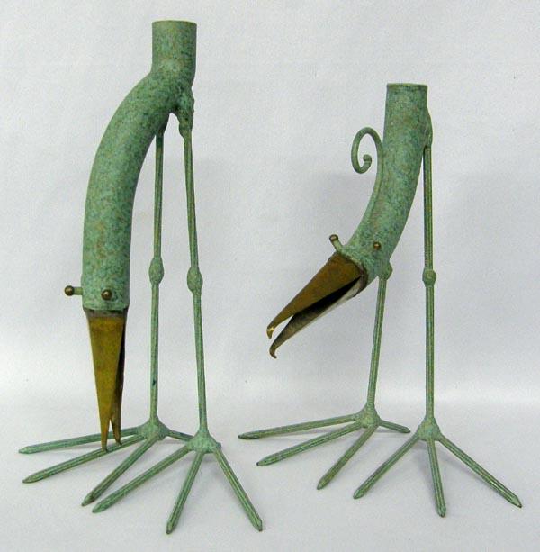 2 1950s Metal Bird Candle Holders by Bushini. Measures 8.5''Hx7''at base. Buyers Pay Actual Shipping and Handling Charges(see terms and conditions for more information).