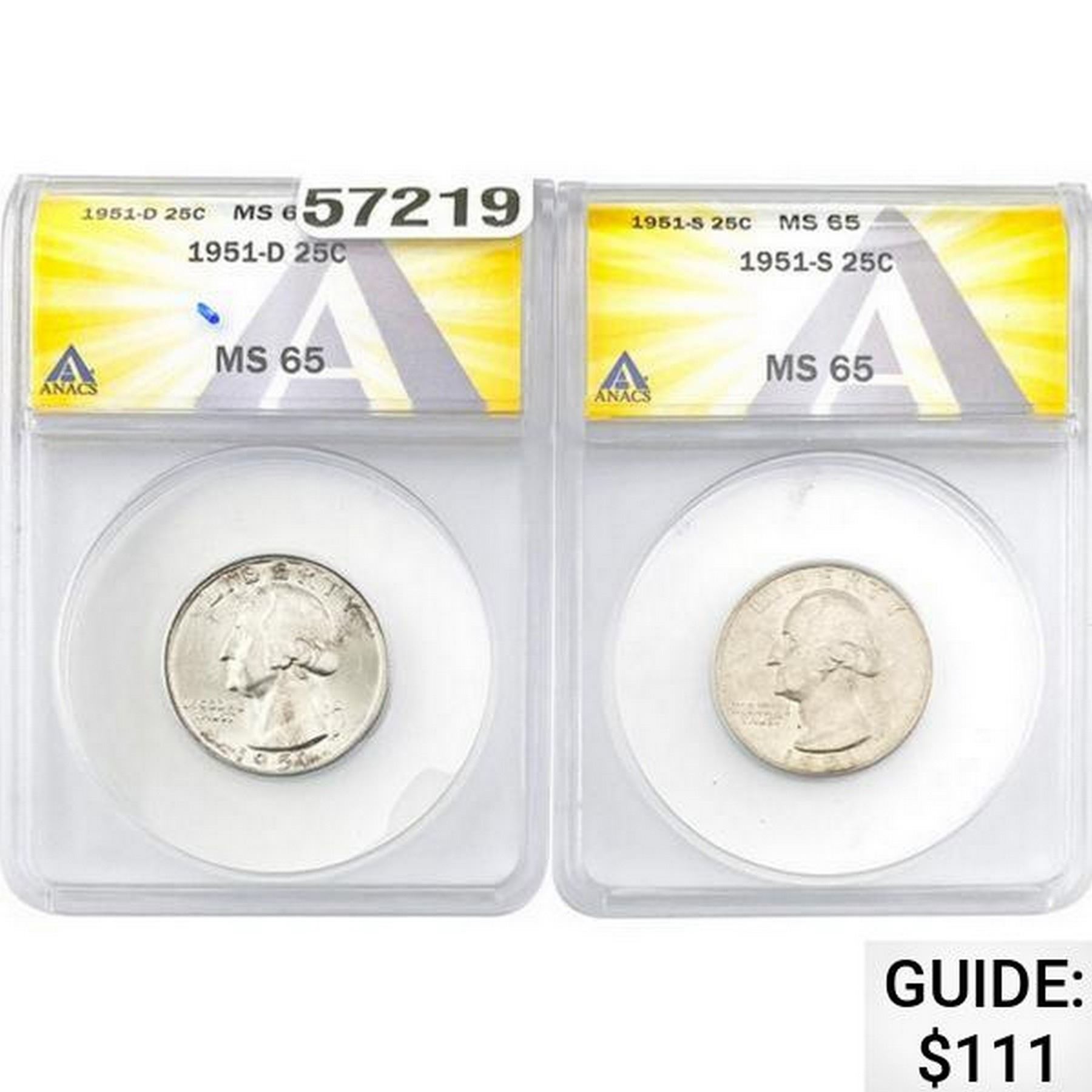 [2] 1951-D/S 25C Jefferson ANACS MS65