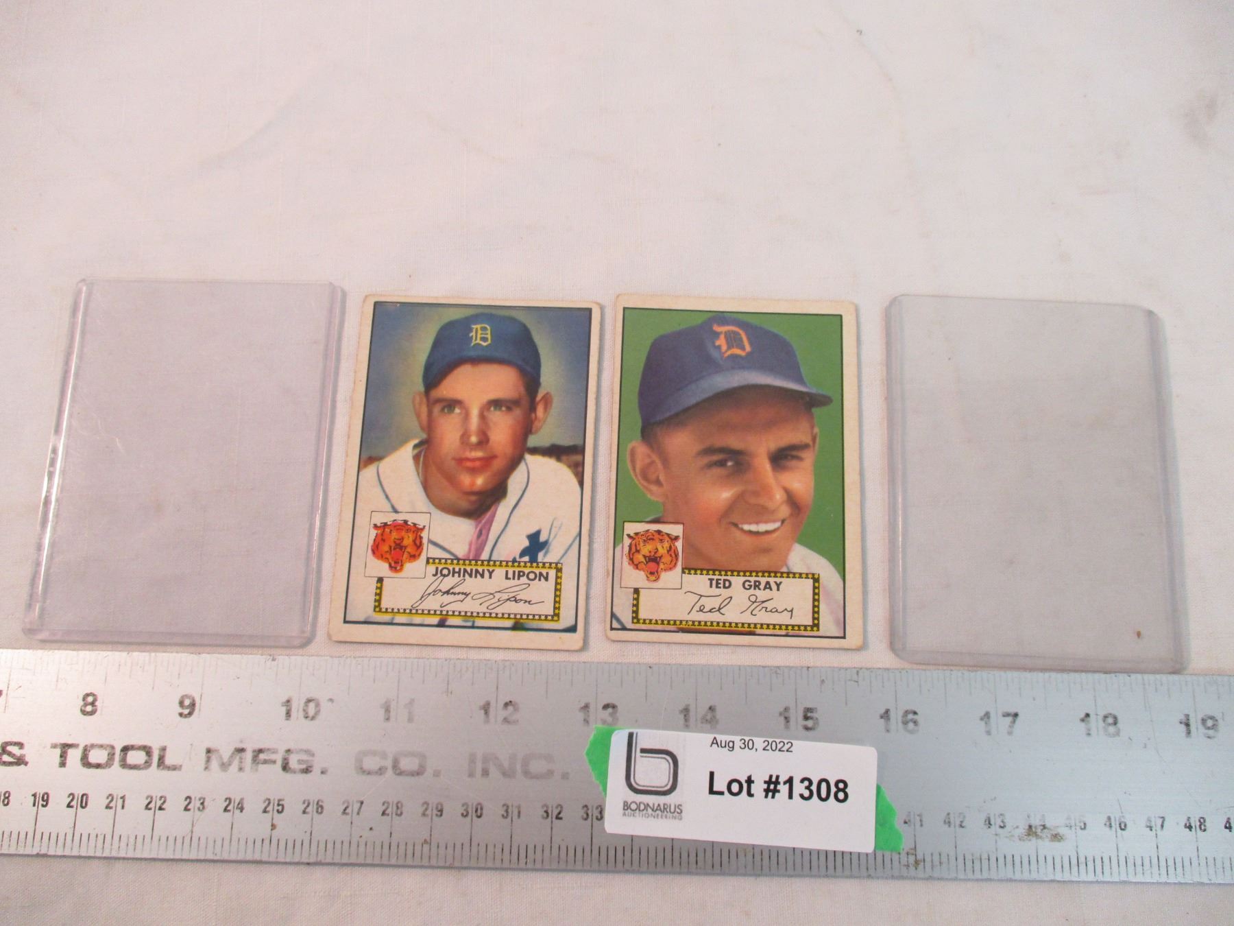 (2) 1952 Topps Baseball - Detroit Tigers - Johnny Lipton + Ted Gray