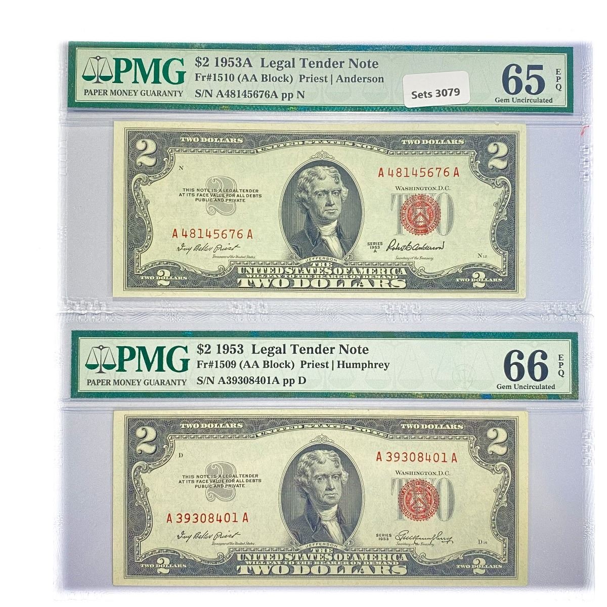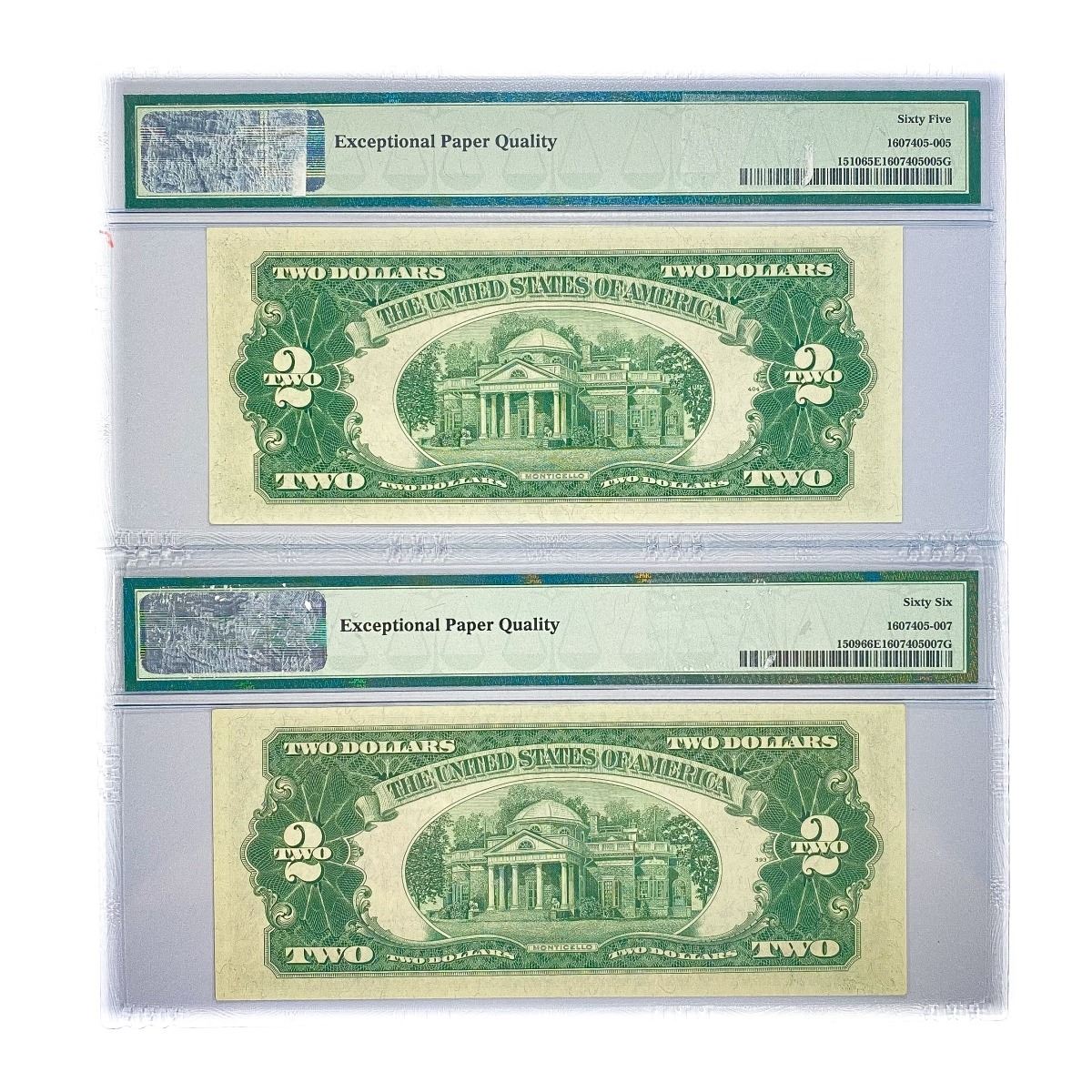 (2) 1953 $2 Legal Tender Notes PMG GEM UNC