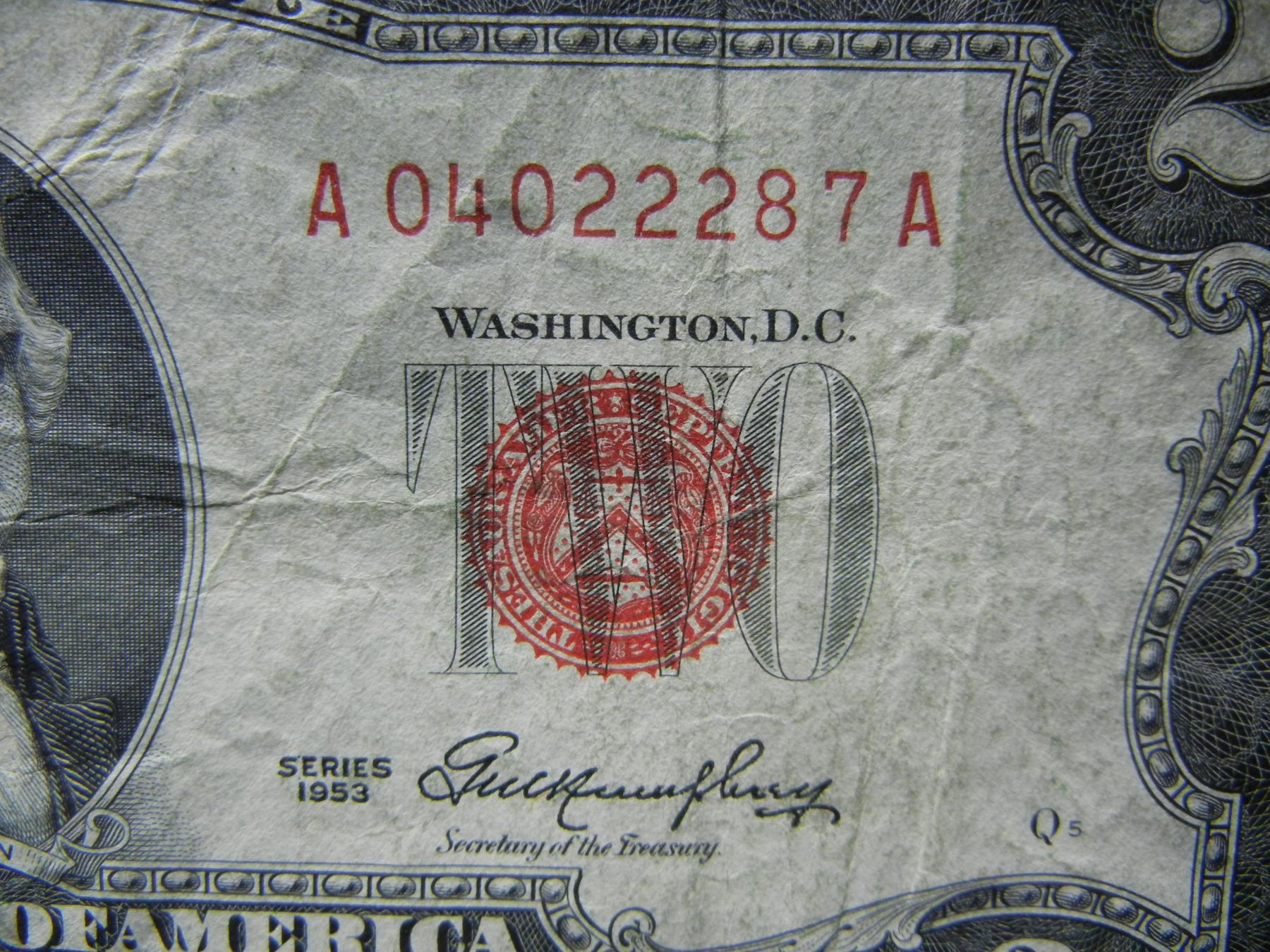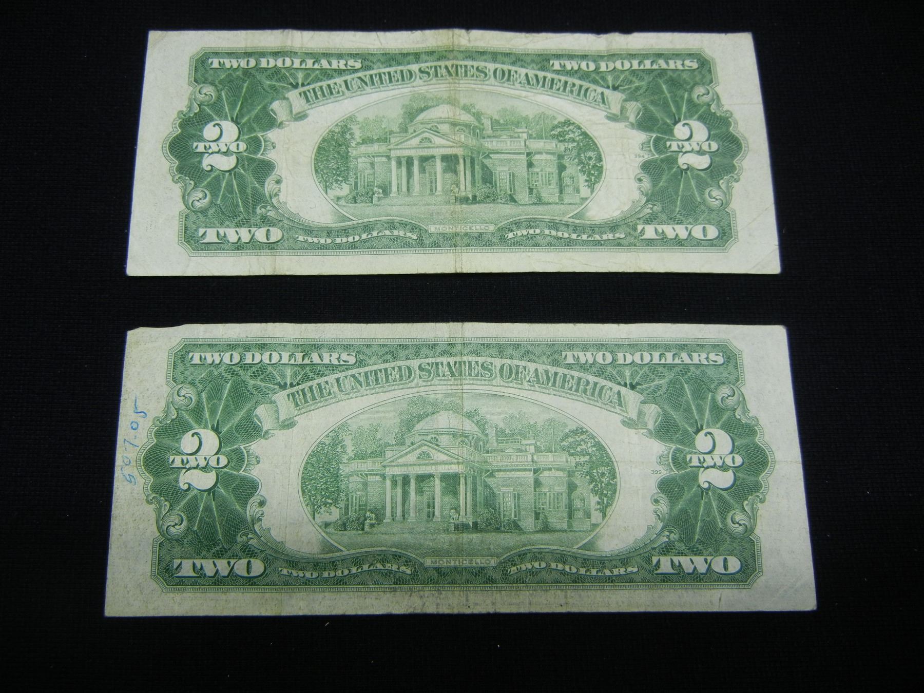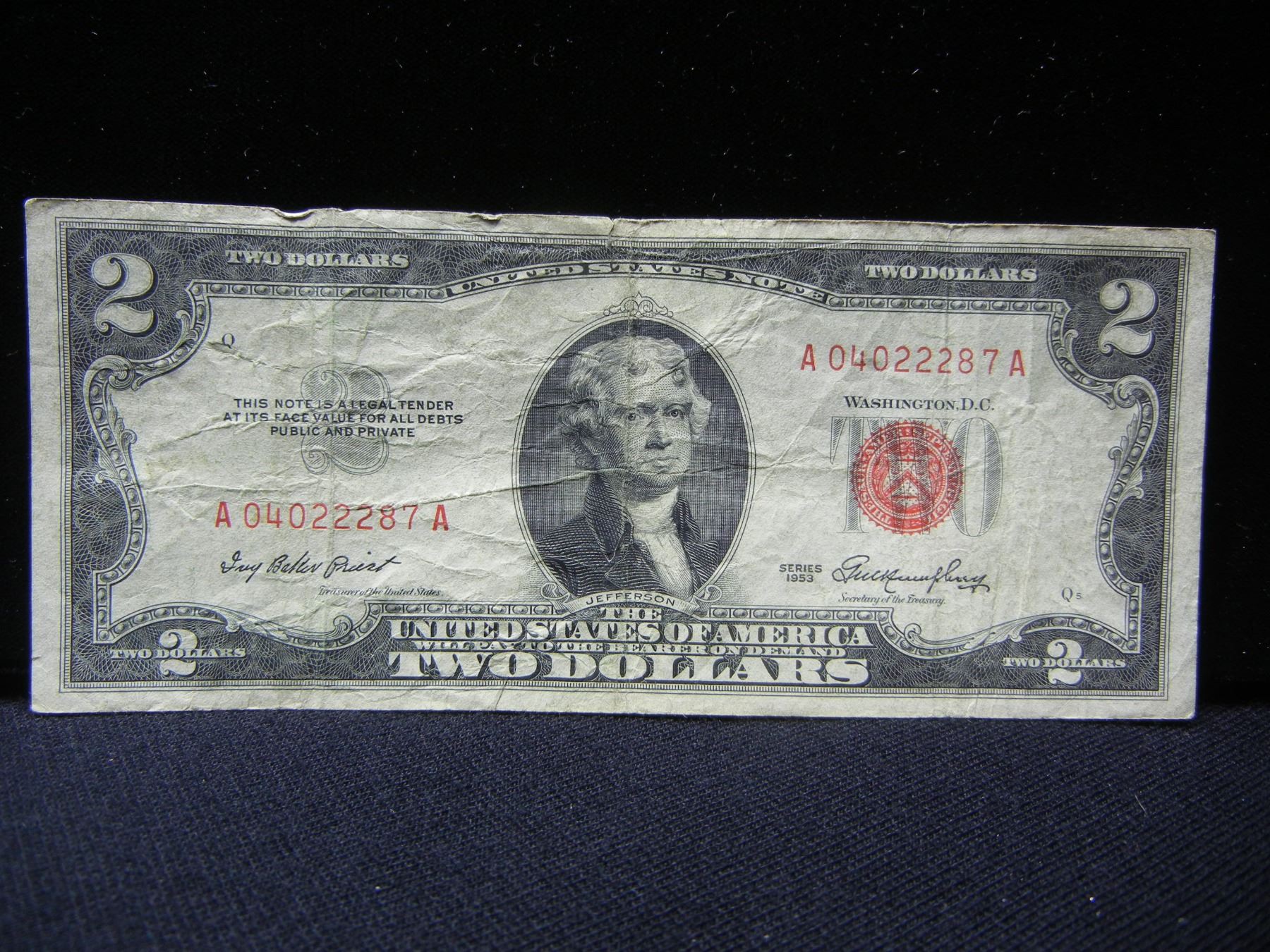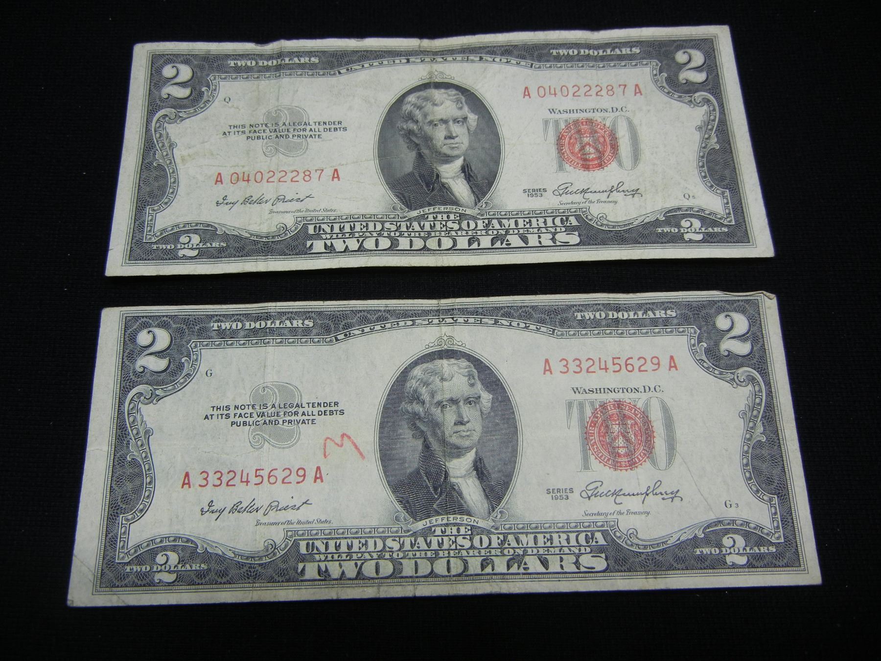(2) 1953 Red Seal Two Dollar Notes, One With Low Serial Number