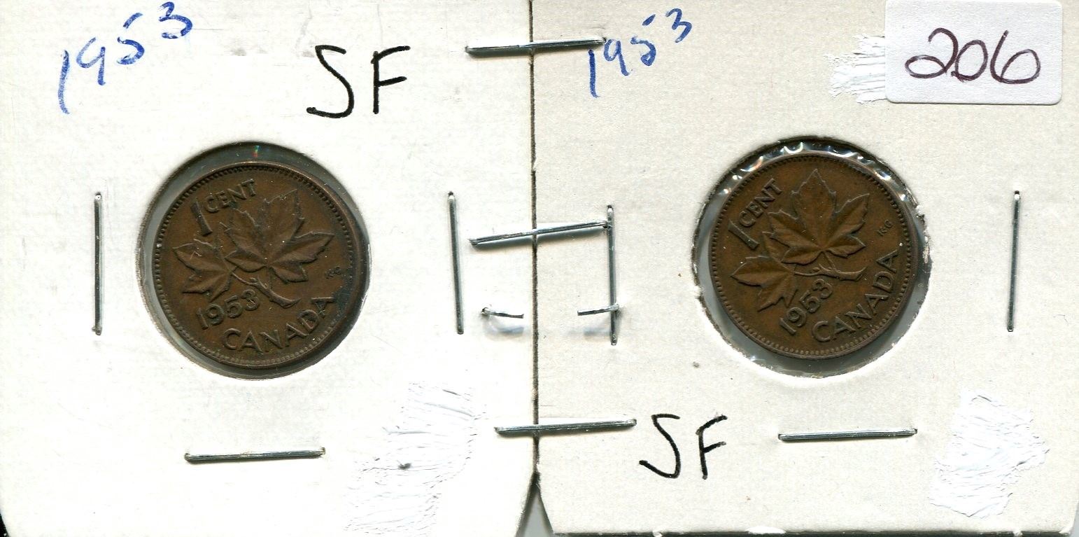 2-1953 Shoulder fold,2-Small Canadian pennies,Queen Elizabeth II