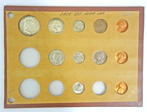 ( 2 ) 1954 MINT SETS IN PLASTIC HOLDER, 1955 MINT SET IN PLASTIC HOLDER,