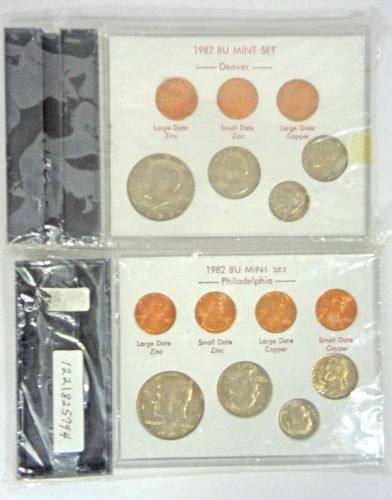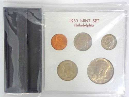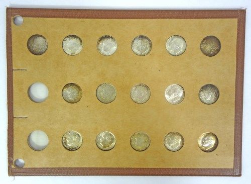 ( 16 ) ROOSEVELT DIMES IN A WAYTE RAYMOND HOLDER MOSTLY BU, AND A 1982 P & D SET AND 1983-P , ESTIMATE $550.00 TO $575.00
