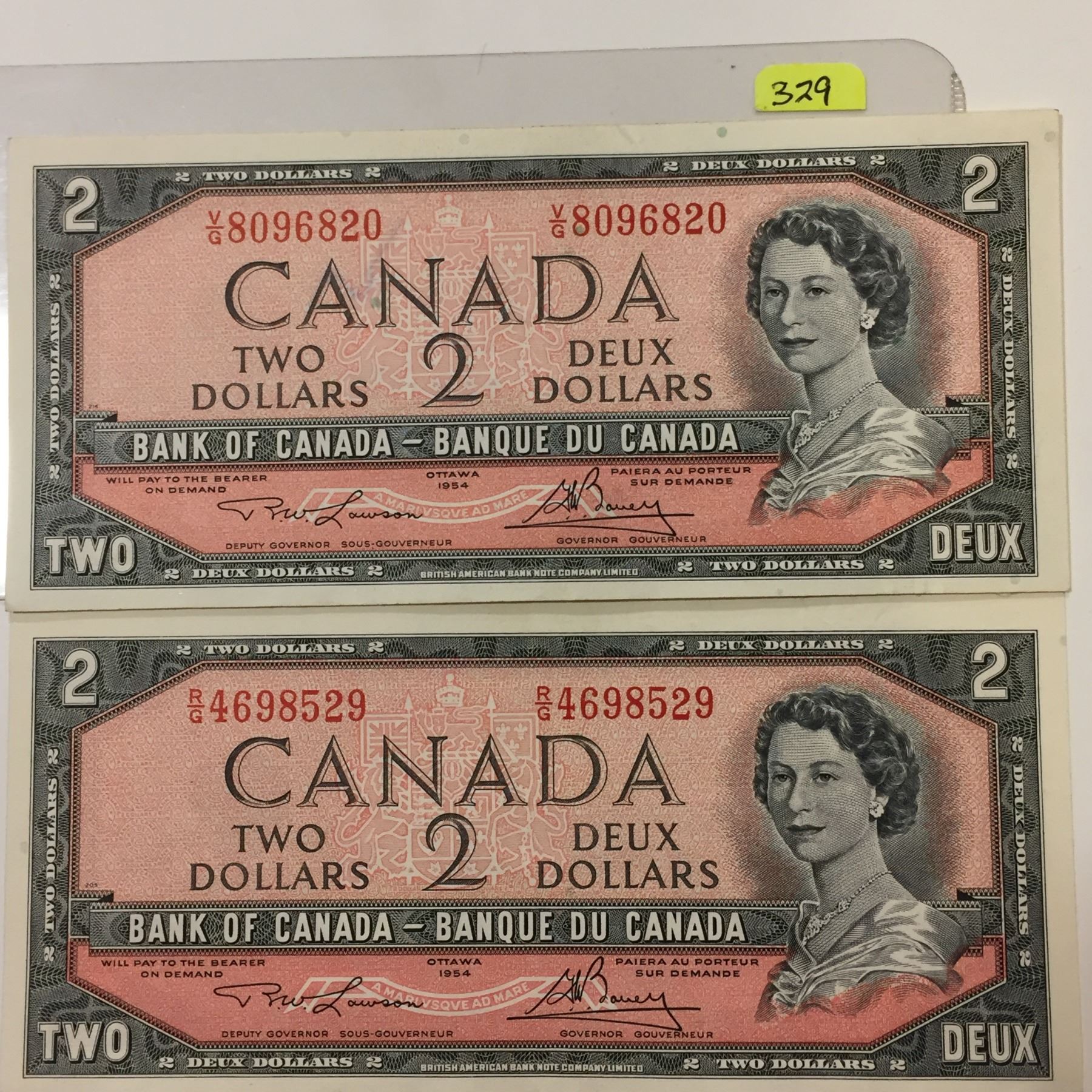 2 - 1954 Two Dollar Banknotes - Lawson/Bouey