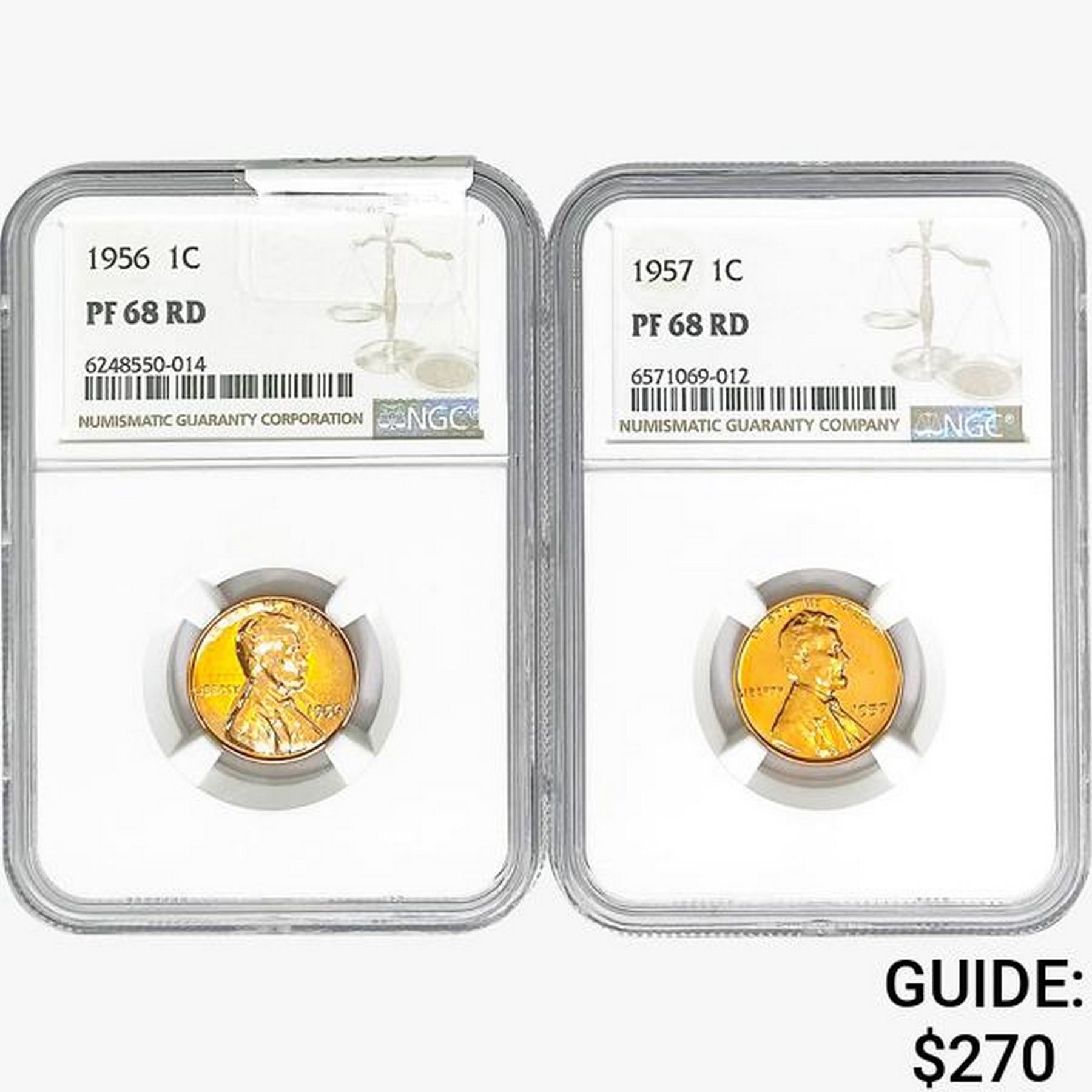 [2]1956-1957 Wheat Cent NGC PF68 RD