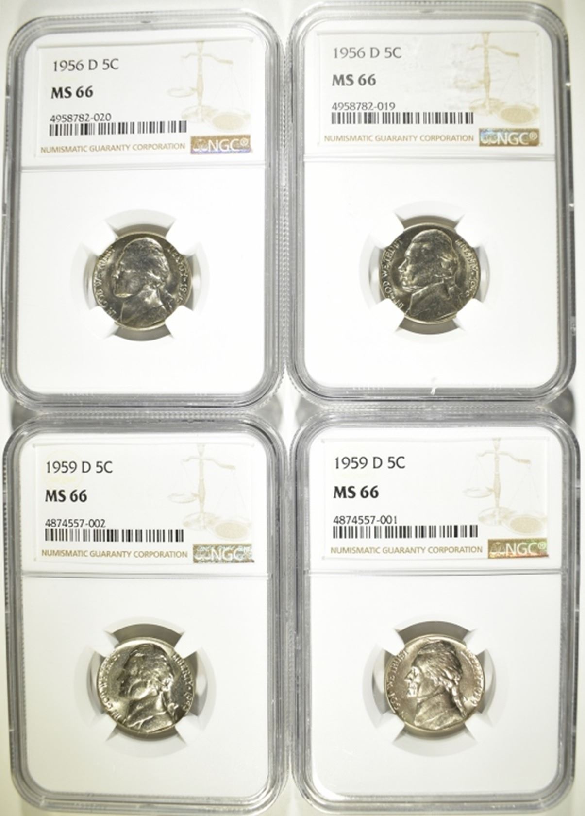 2-1956-D & 2-59-D JEFFERSON NNICKELS, NGC MS-66