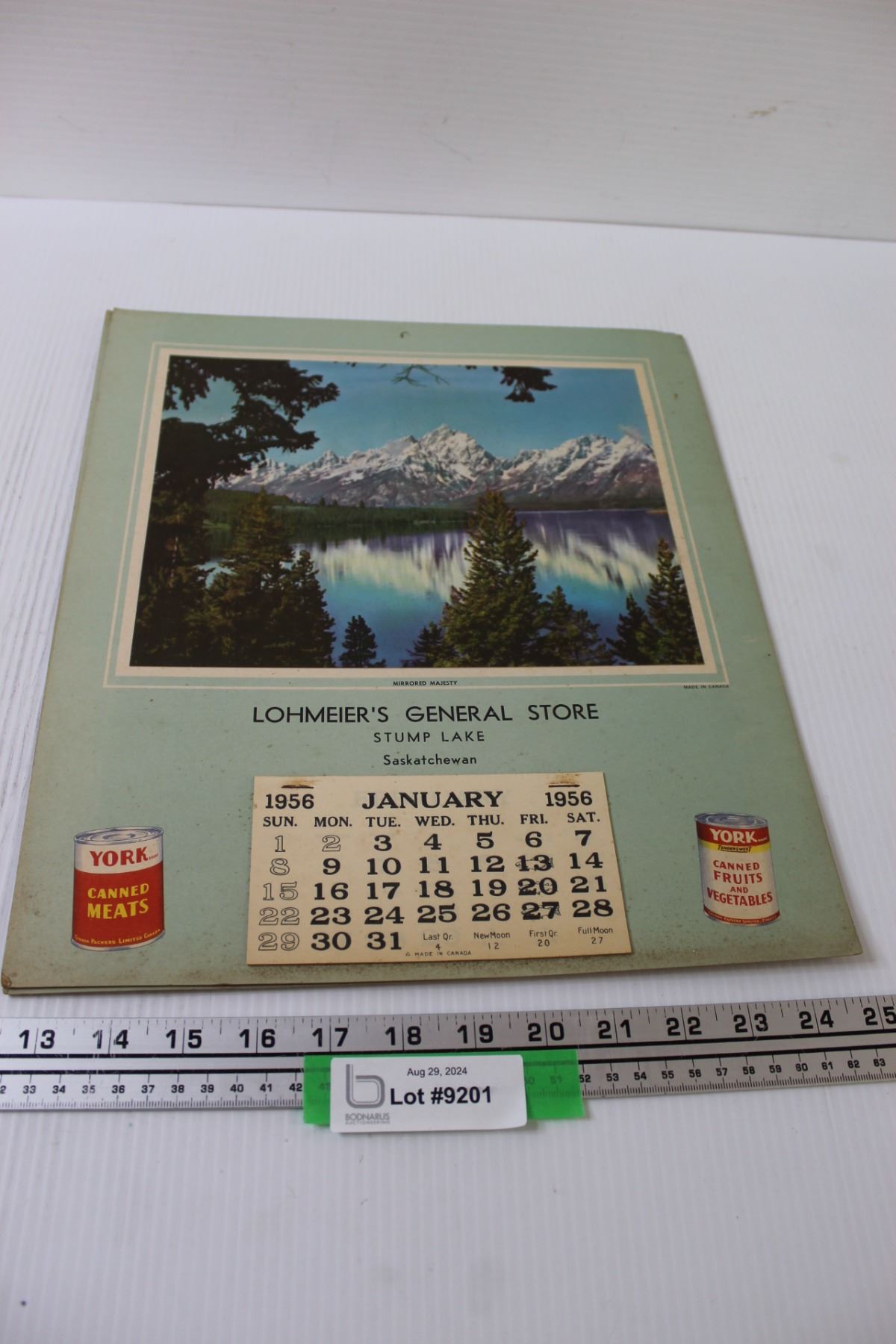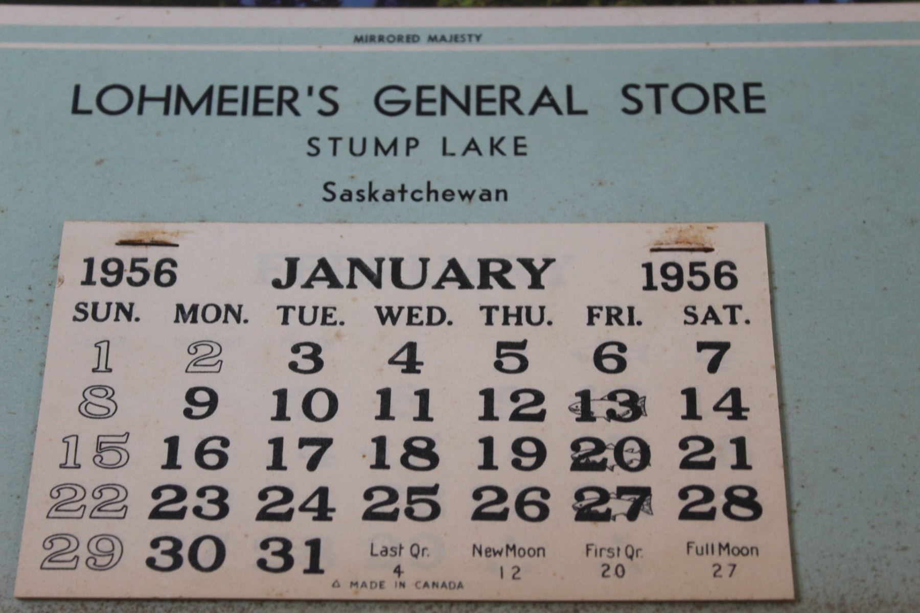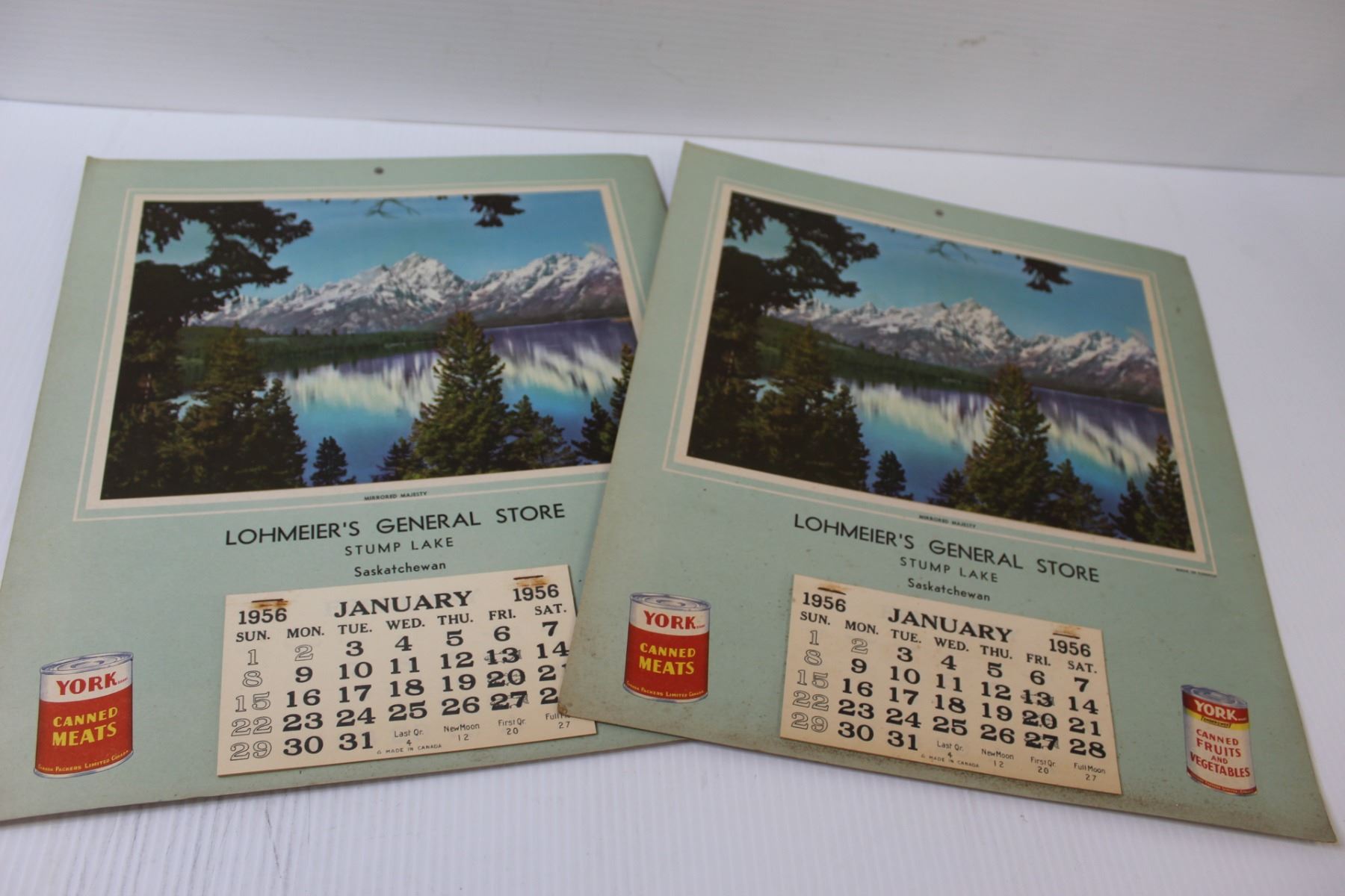 (2) 1956 Lohmeiers General Store Calendars - Stump Lake Sask.