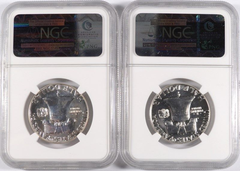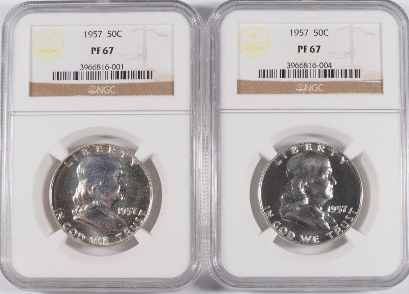 ( 2 ) 1957 FRANKLIN HALF DOLLARS, NGC PROOF-67