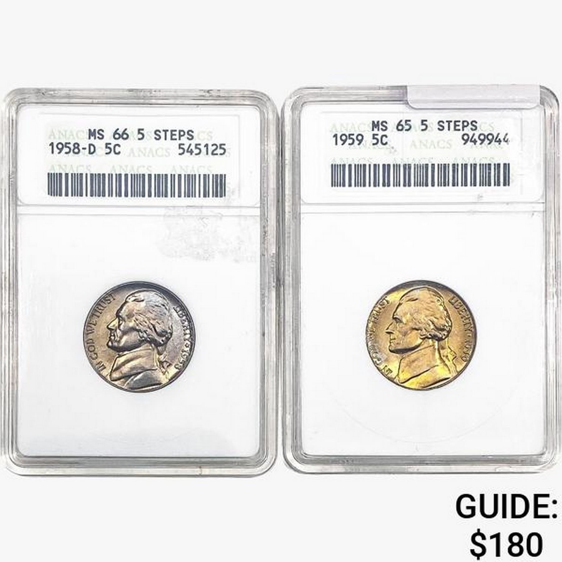 [2]1958-1959 Jefferson Nickel ANACS MS65-66 5 Steps