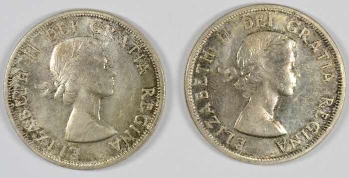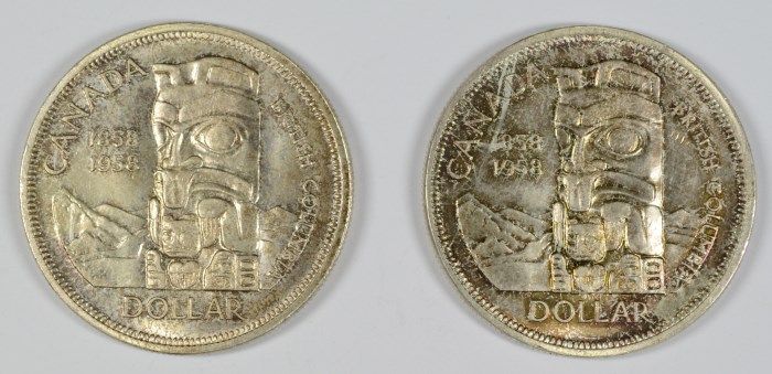 ( 2 ) 1958 CANADIAN TOTEM POLE SILVER DOLLARS, BU