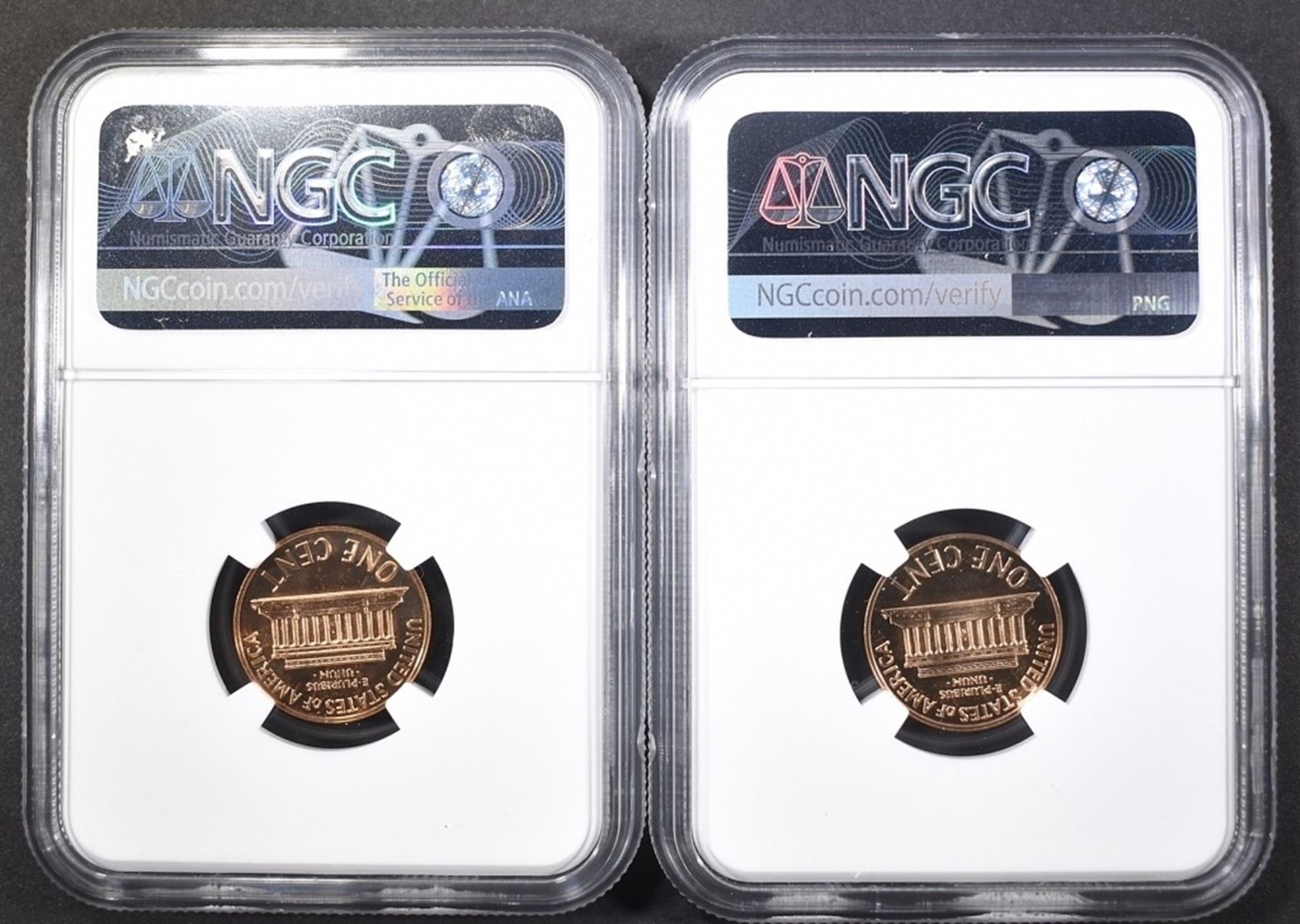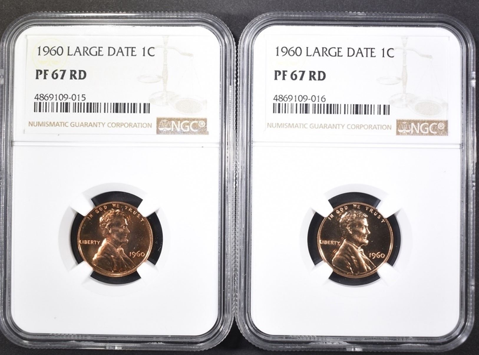 2-1960 LARGE DATE LINCOLN CENTS, NGC PF-67 RED
