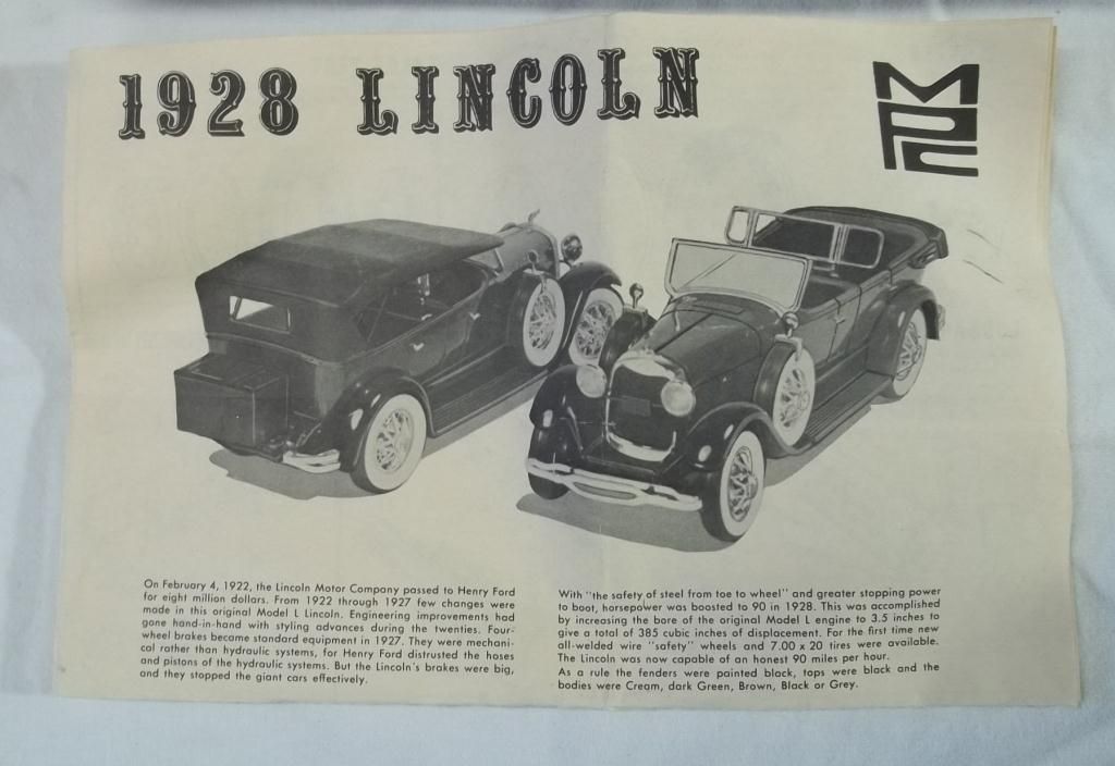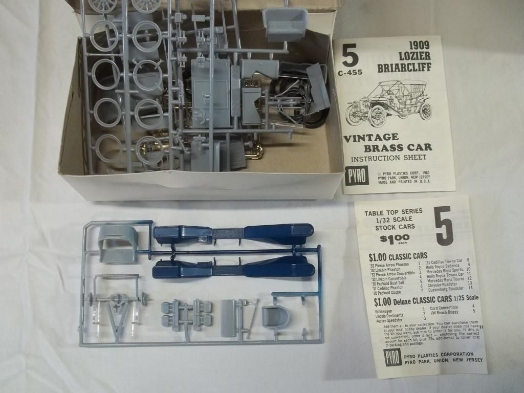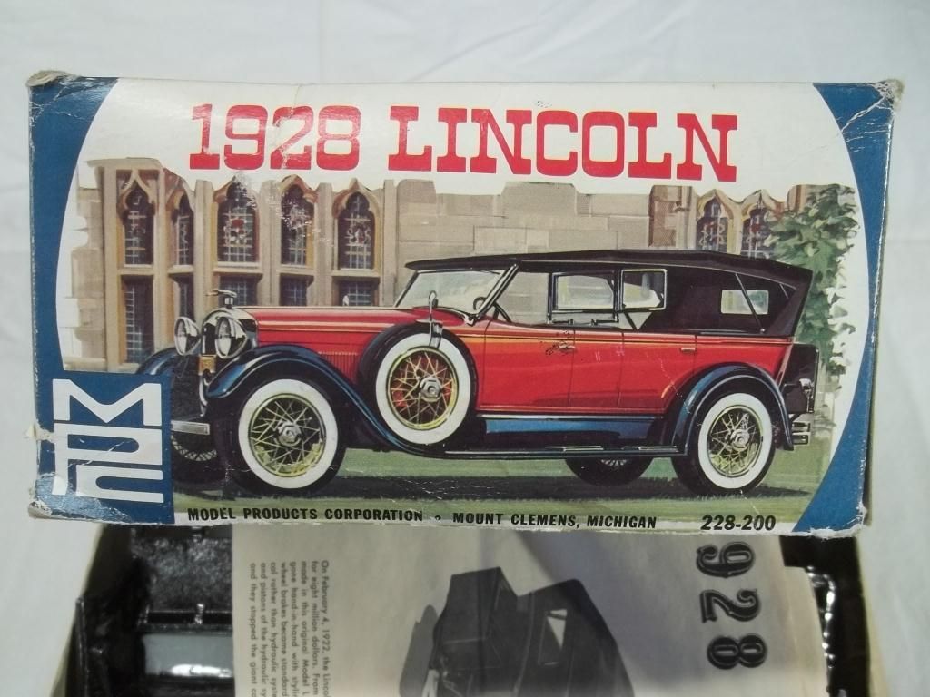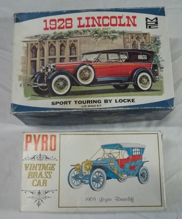 1967 Pyro 1909 Lozier Briarcraft Model C455-125, and undated MPC 1928 Lincoln Sport Touring by Locke 228-200. Both have been started, the Pyro has partially been painted but mostly still on plastic trees. The MPC is extensively painted and removed from trees. Both include instructions. May or may not be complete.