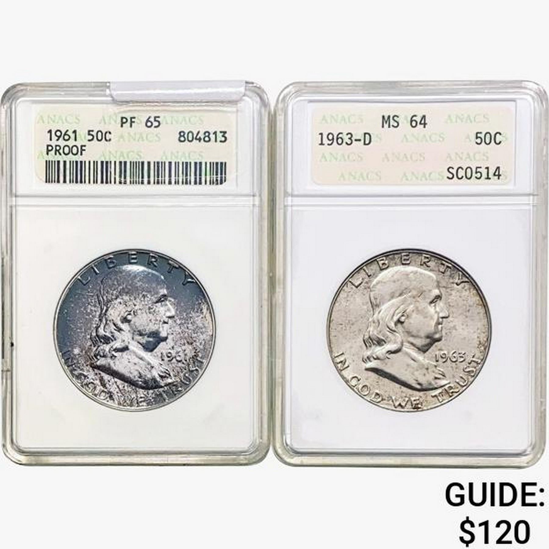 [2]1961-1963 Franklin Half Dollar ANACS MS/PF64-65