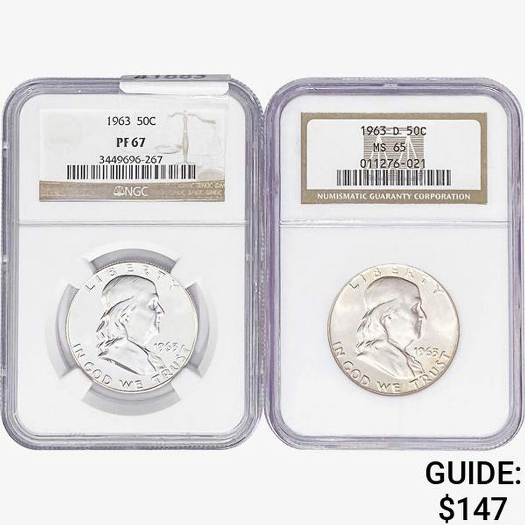[2]1963 & 1963-D Franklin Half Dollar NGC MS/PF