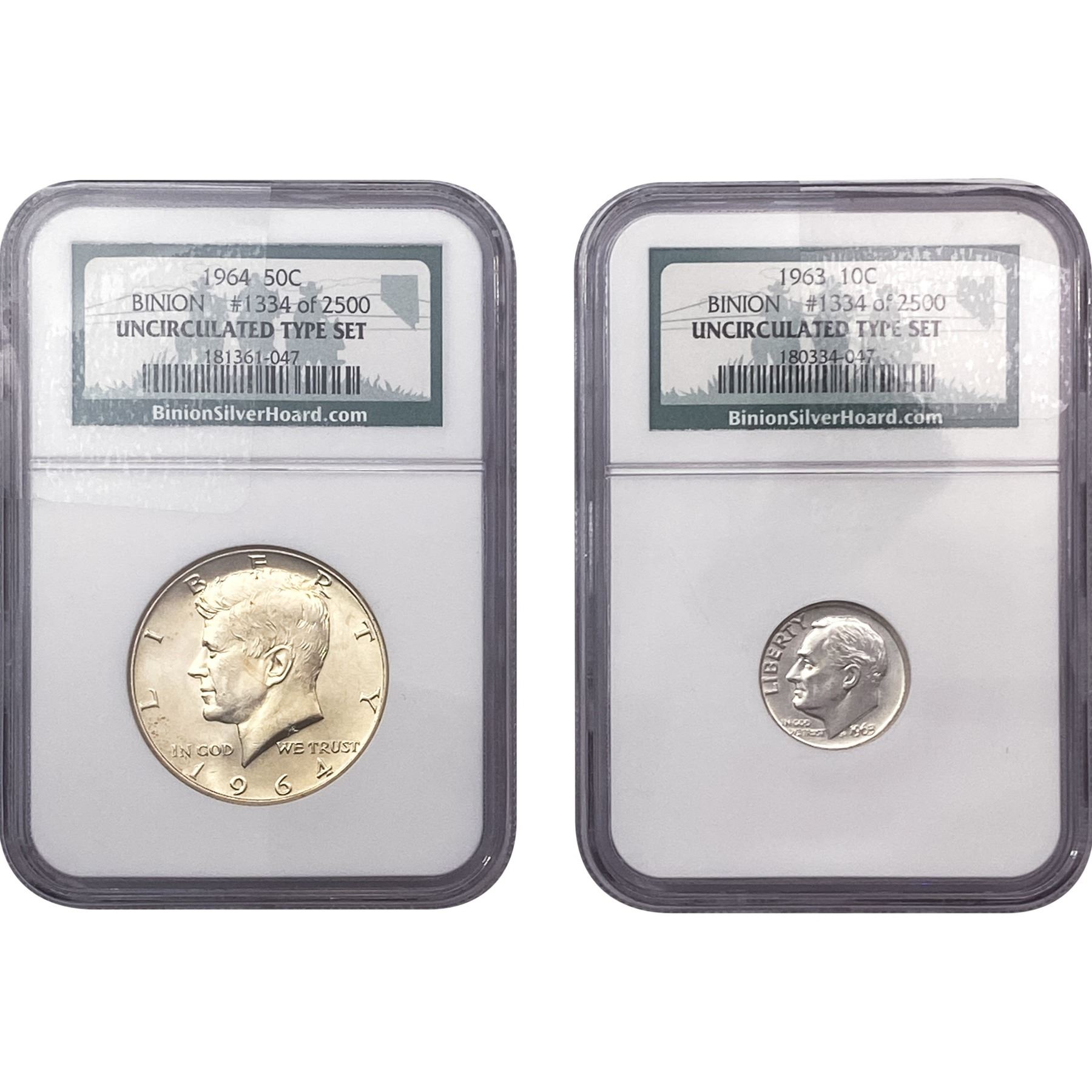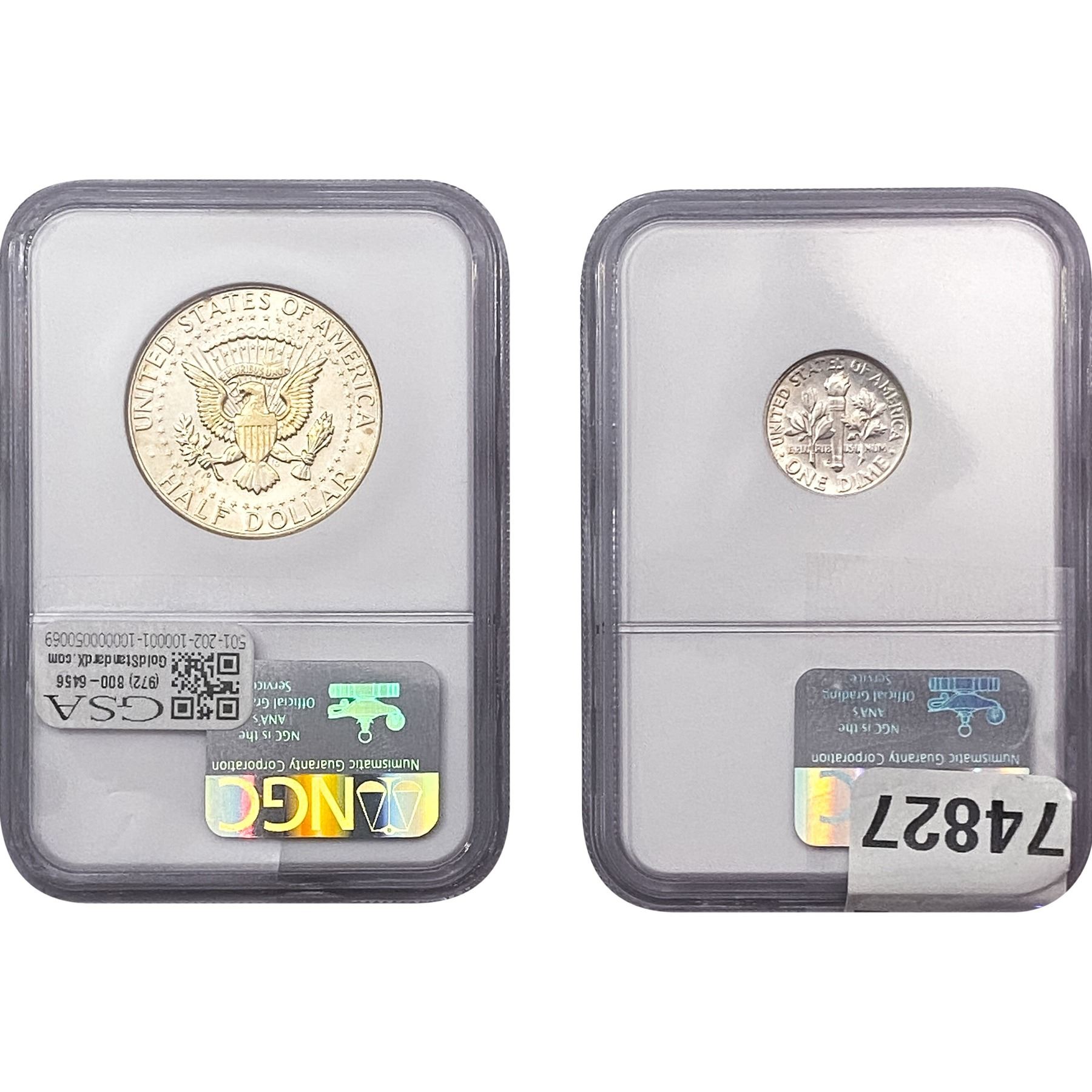 [2}1963-1964 10C Roosevelt/50C Kennedy NGC UNC