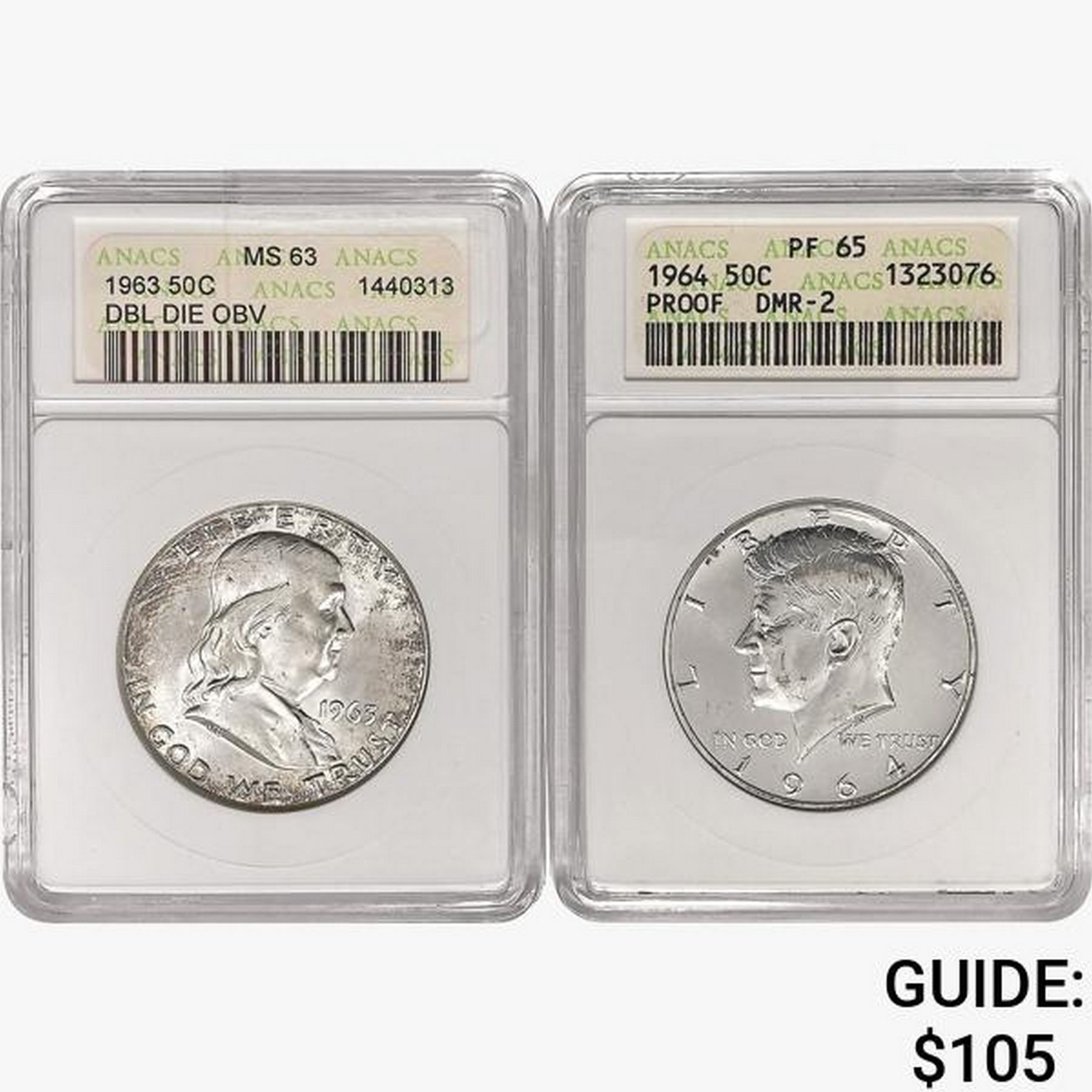 [2] 1963-1964 Silver Half Dollars ANACS PF/MS