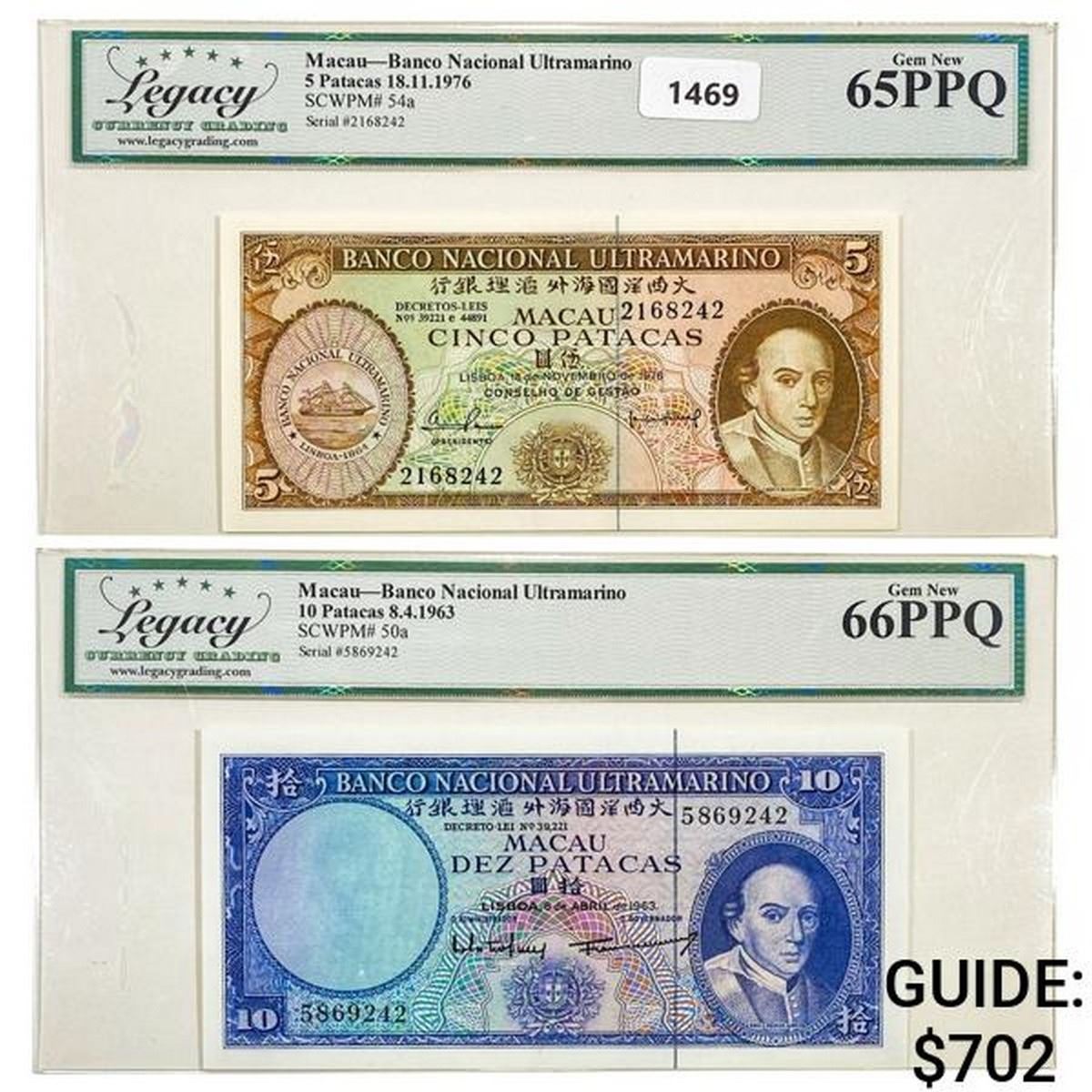 [2]1963&1976 Macau Banco Nacional Ultramarino Currency Legacy GEM UNC PPQ