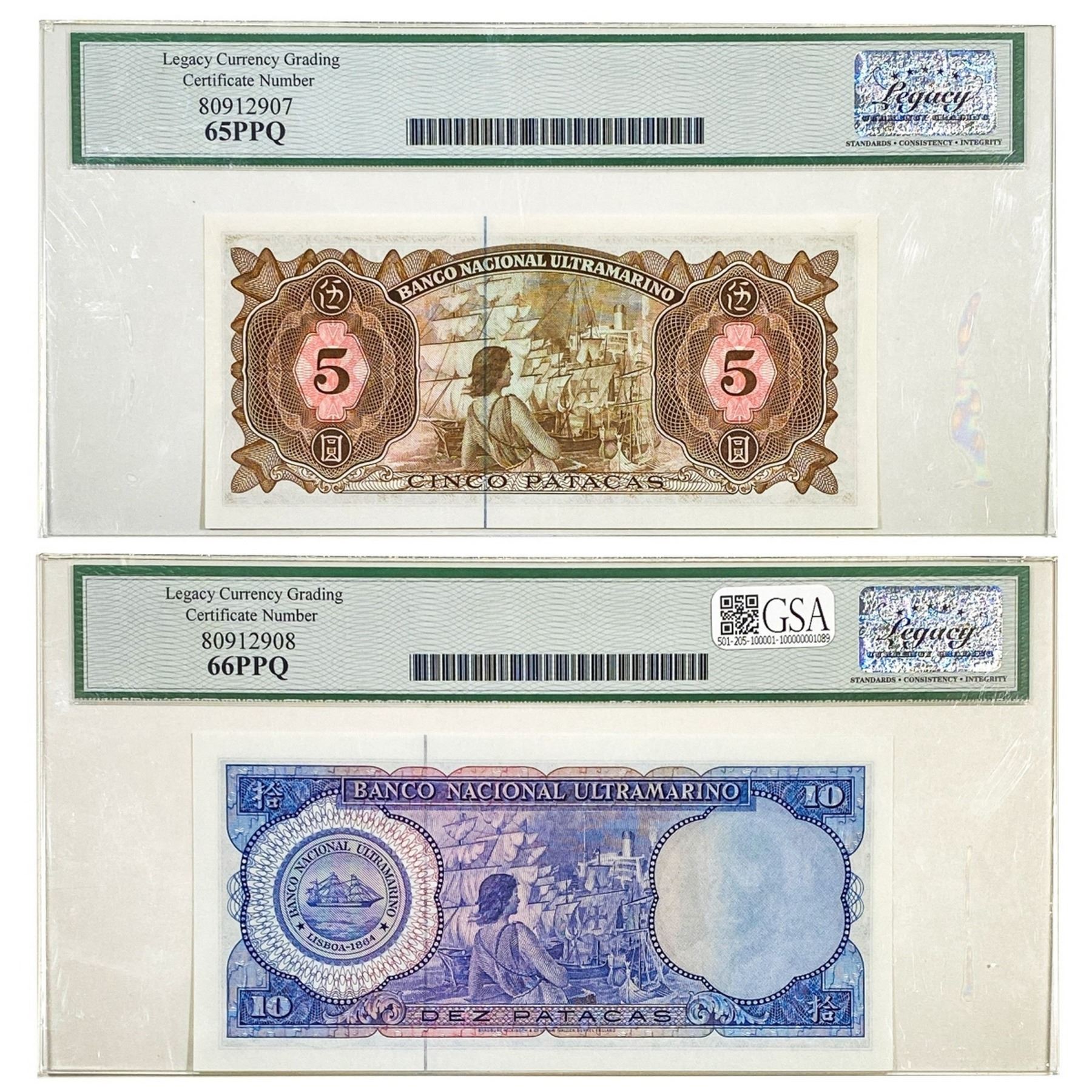 [2]1963&1976 Macau Banco Nacional Ultramarino Currency Legacy GEM UNC PPQ