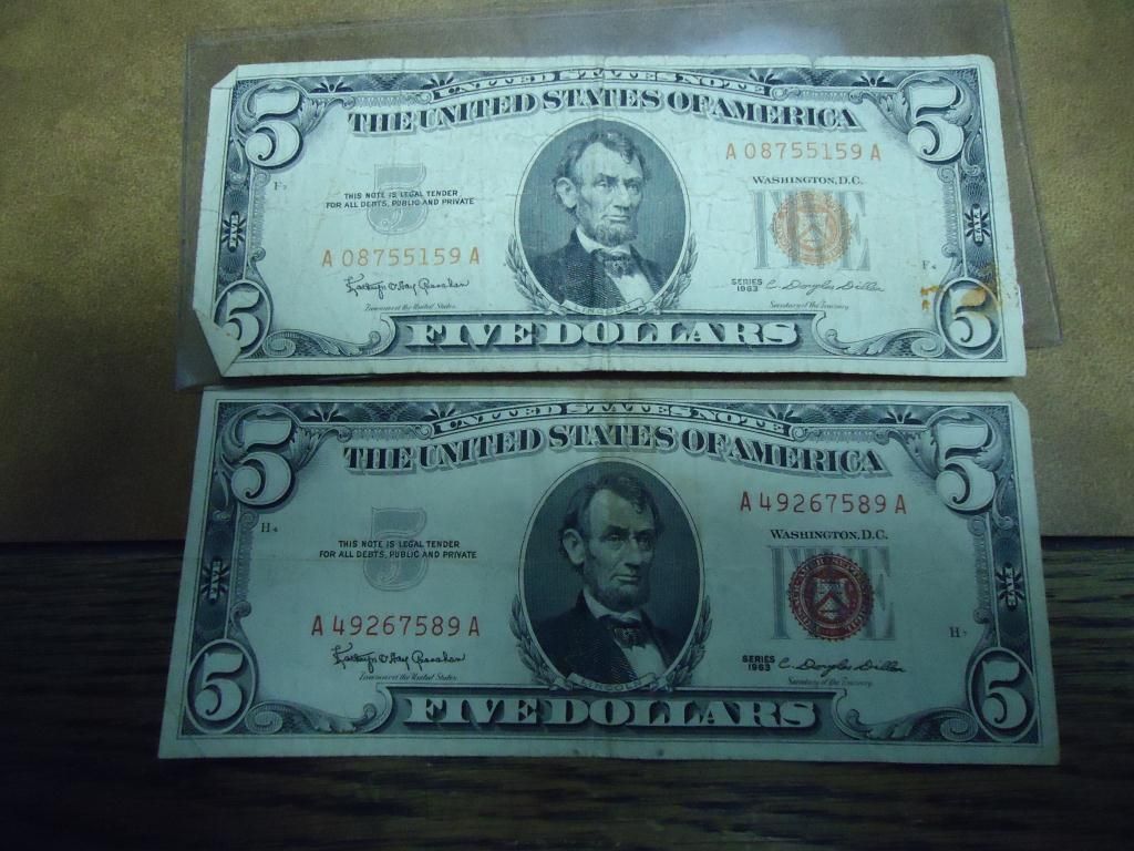 2-1963 $5 US NOTES RED SEALS