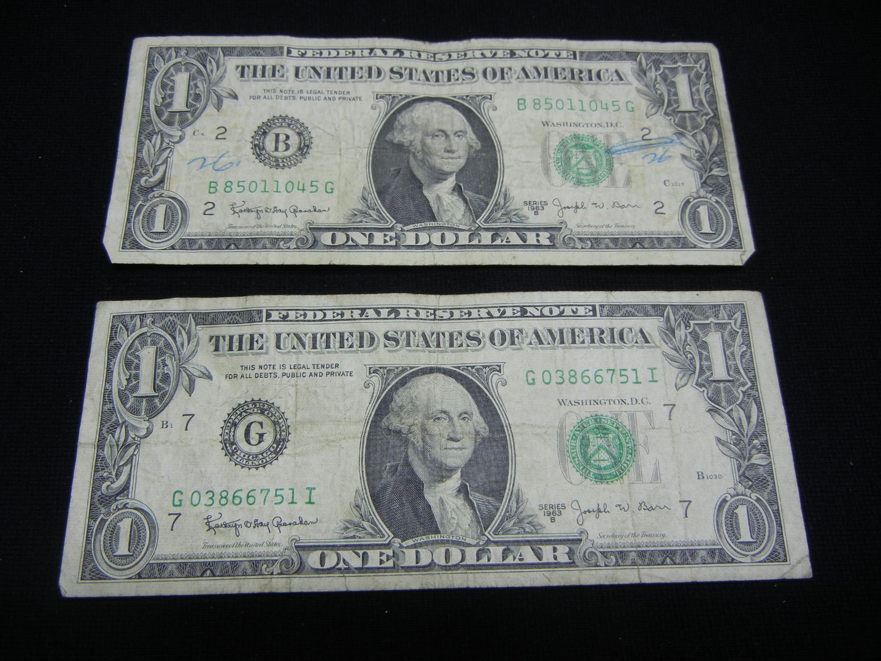 (2) 1963 B Barr Federal Reserve One Dollar Notes