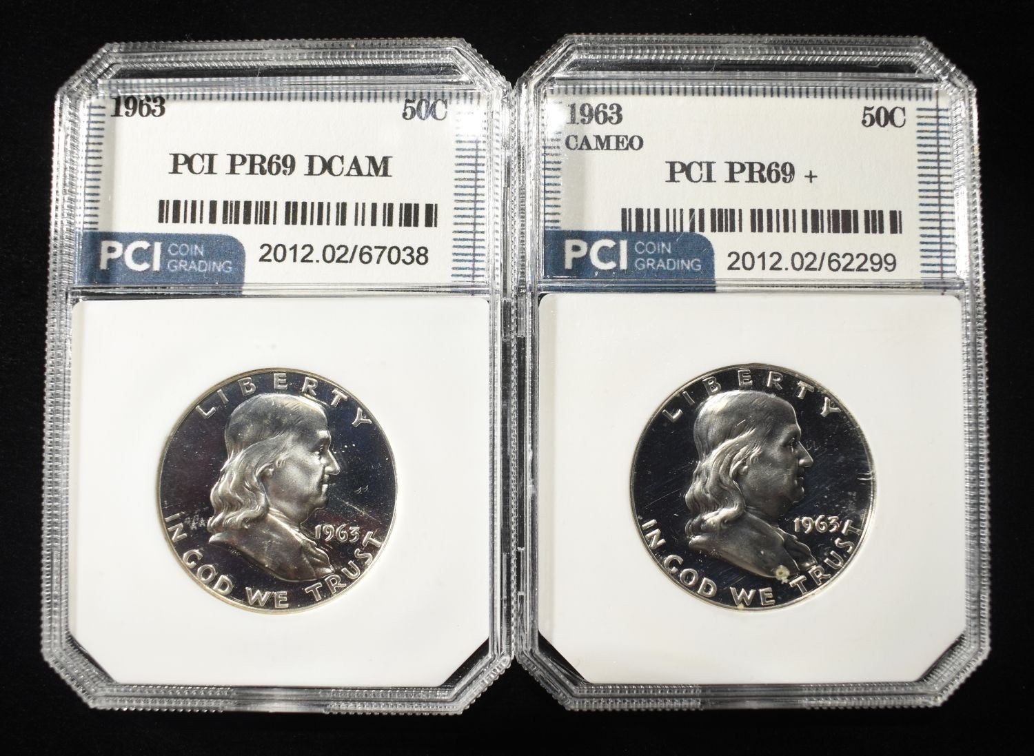 (2) 1963 FRANKLIN HALVES PR PCI SUPERB GEM+ BU
