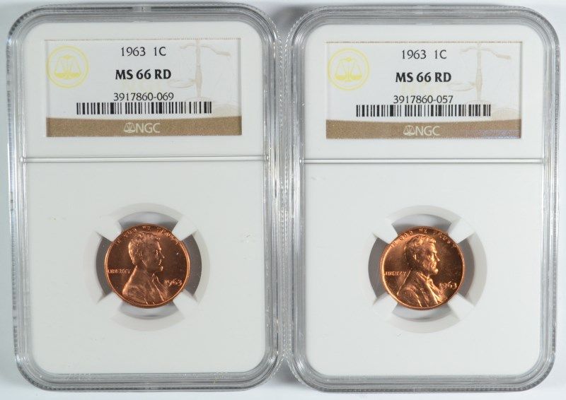 ( 2 ) 1963 LINCOLN CENTS, NGC MS-66 RED! RARE! MS-67 GO FOR $3000.00 EACH!
