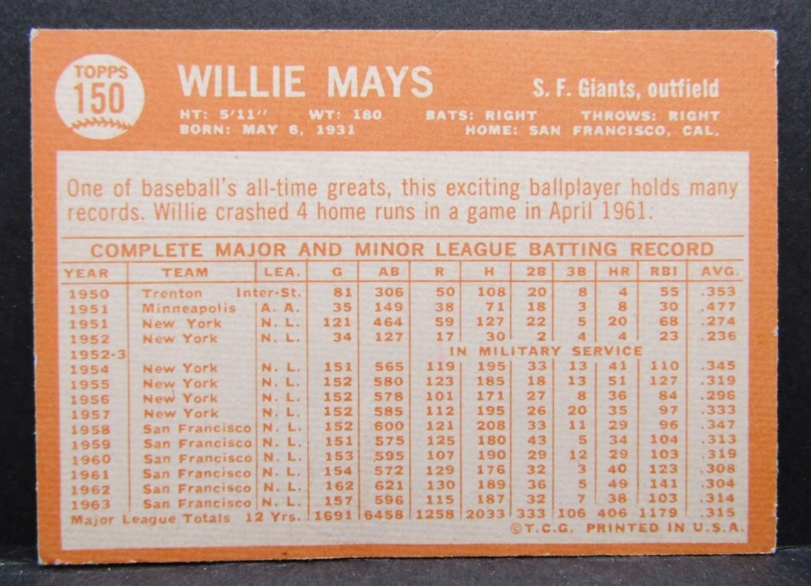 #150 WILLIE MAYS EX & #225 ROGER MARIS EX - CLEAN CARDS